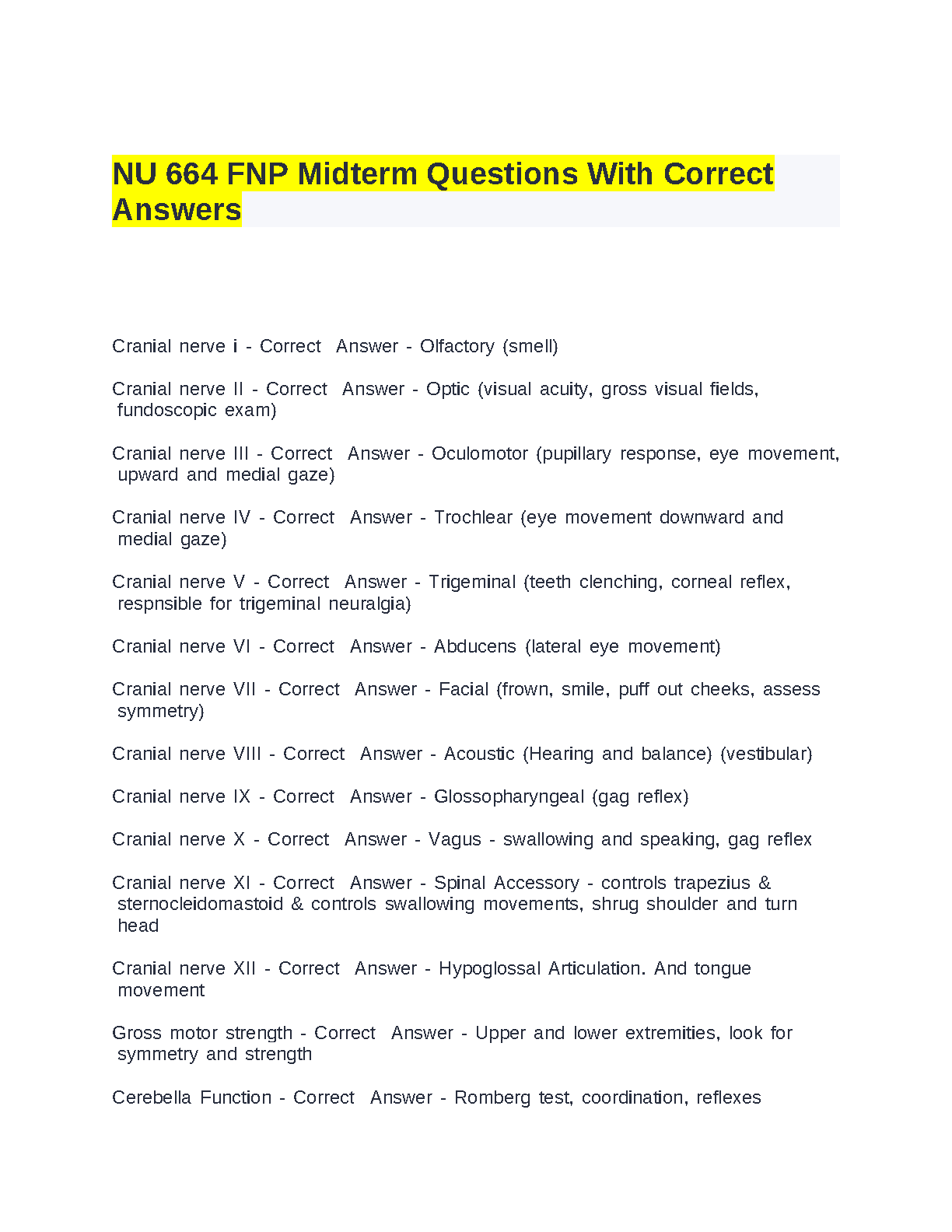 NU 664 FNP Midterm Exam Questions and Answers: A 2024-2025 Guide for First-Attempt Success