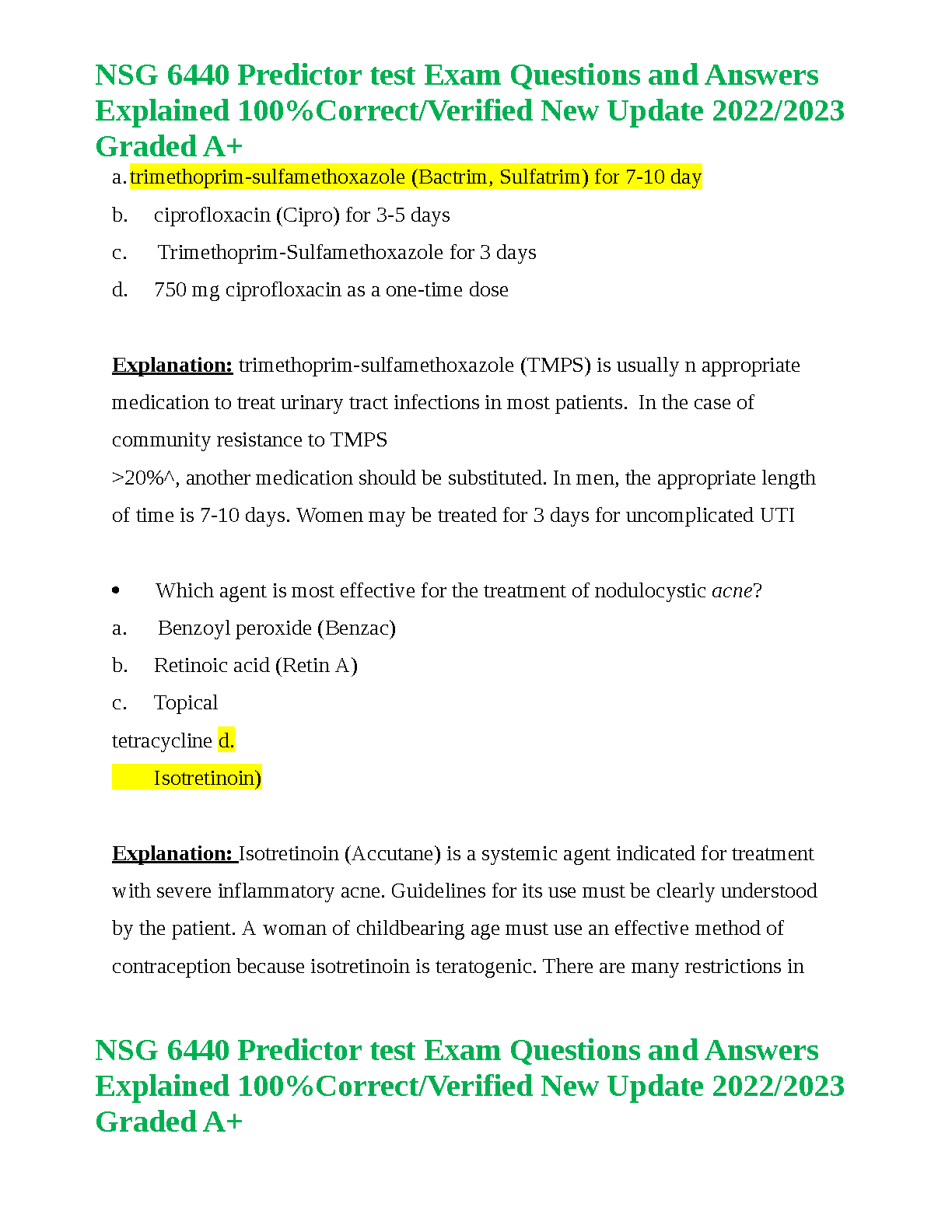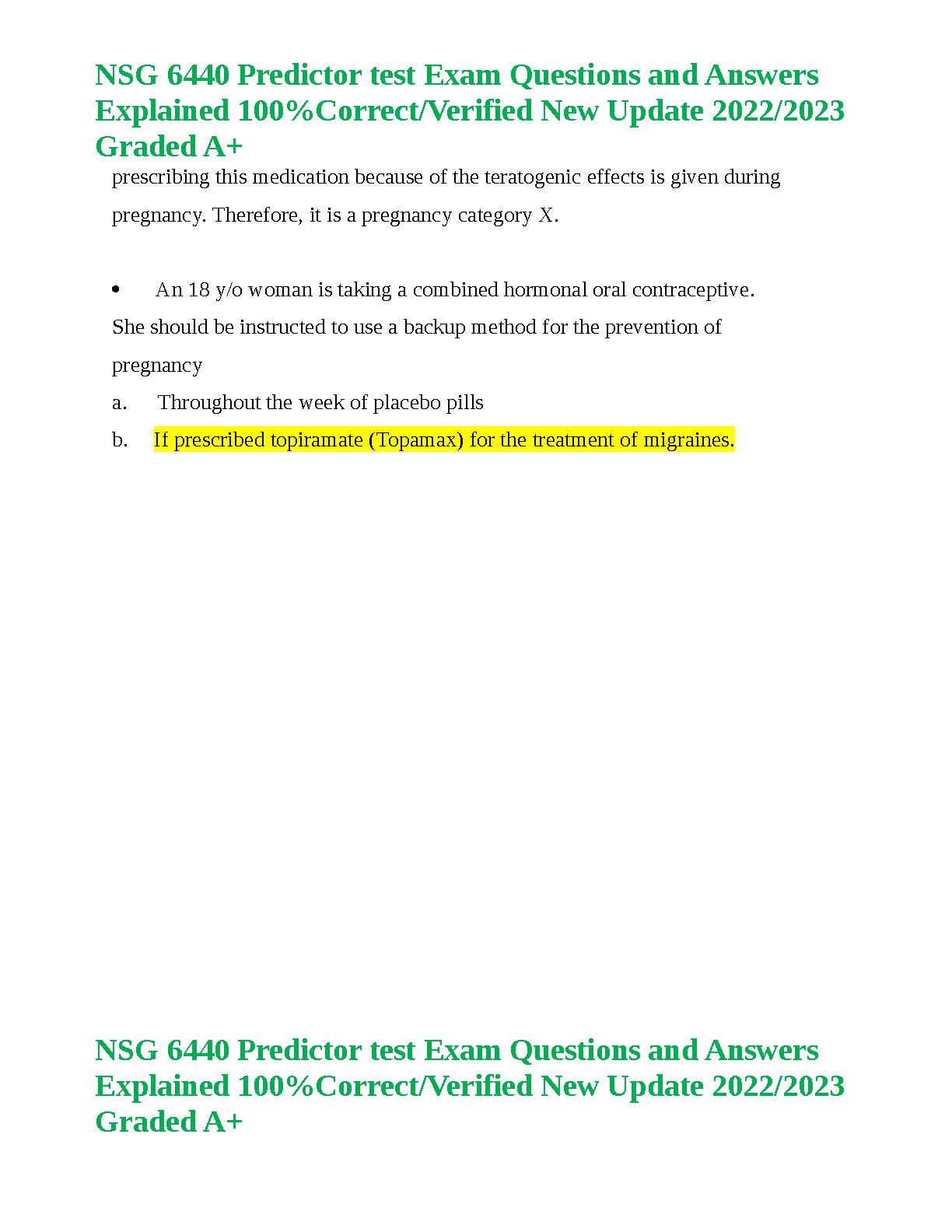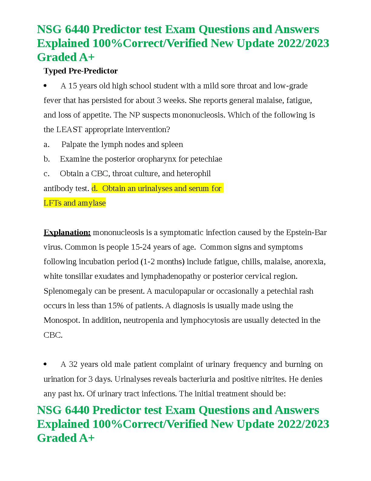 NSG 6440 Predictor Test Exam Questions and Answers: 2024/2025 Edition - Pass Your Exams on the First Attempt