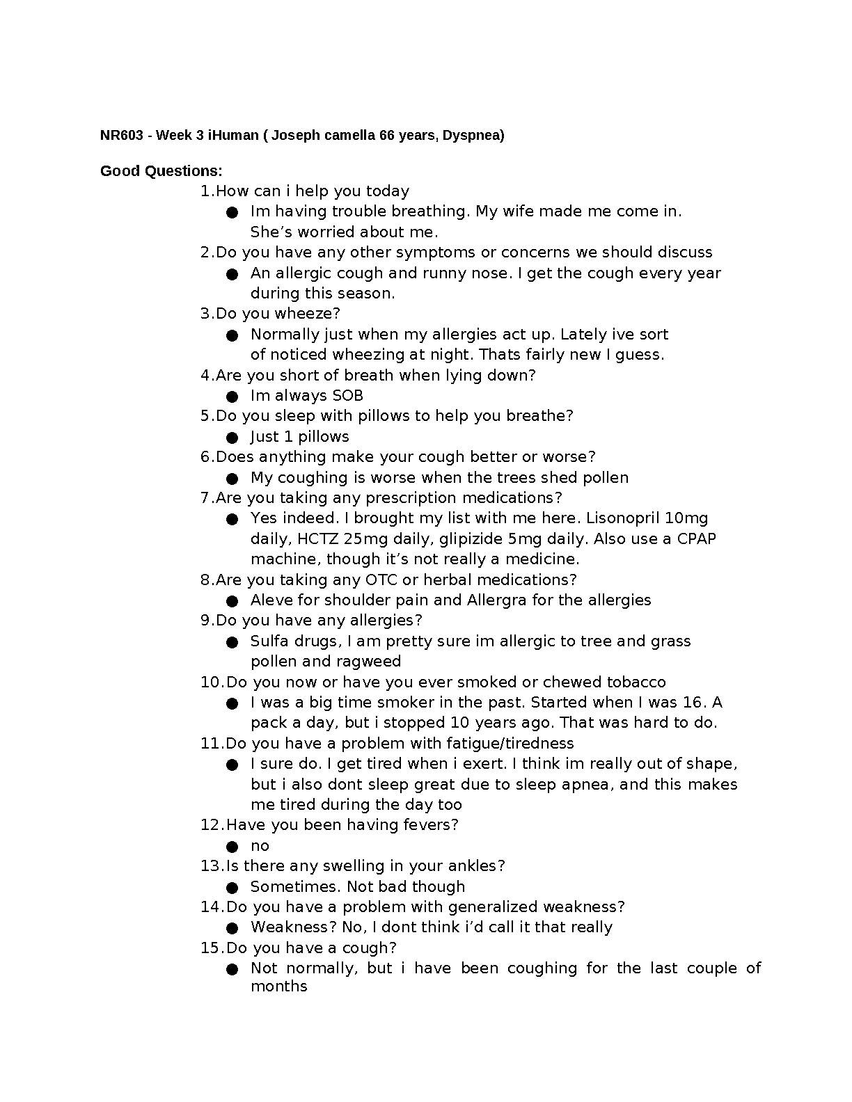 NR603 Week 3 iHuman Case Study: Joseph Camella (66 years, Dyspnea) - 2024/2025 Edition