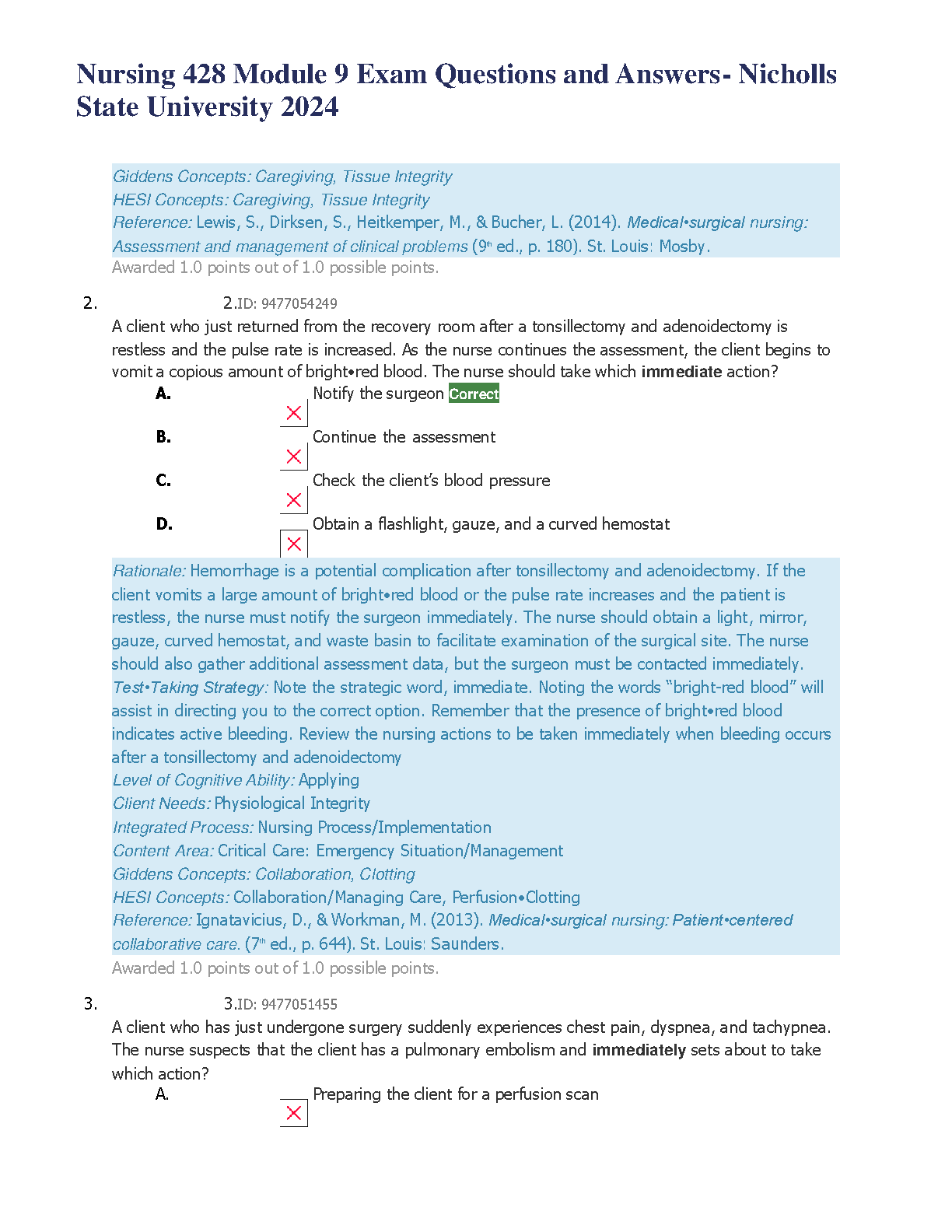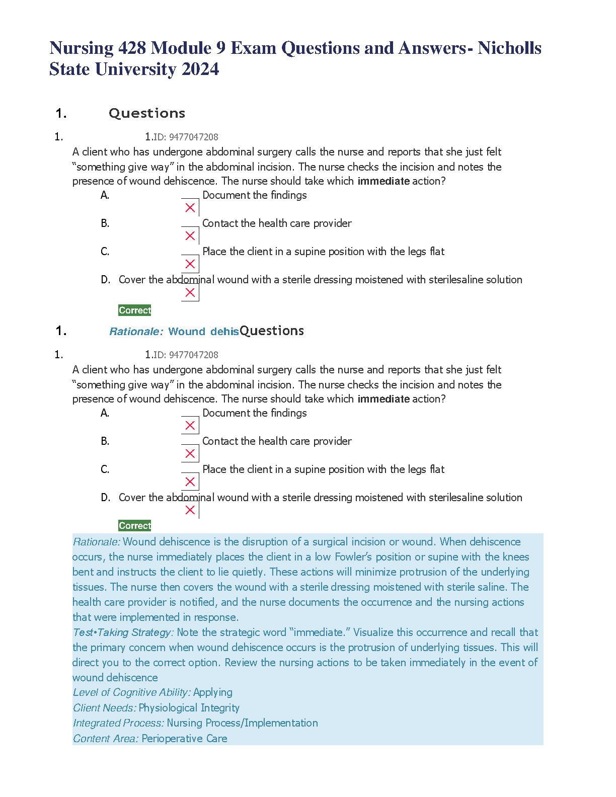 Nursing 428 Module 9 Exam Questions and Answers - Nicholls State University 2024 Edition