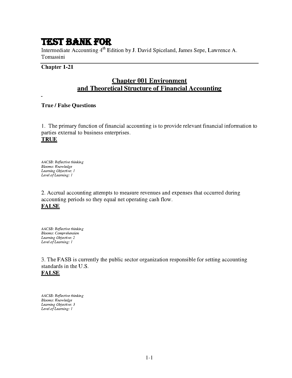 Intermediate Accounting 4th Edition Test Bank by J. David Spiceland, James Sepe, and Lawrence A. Tomassini