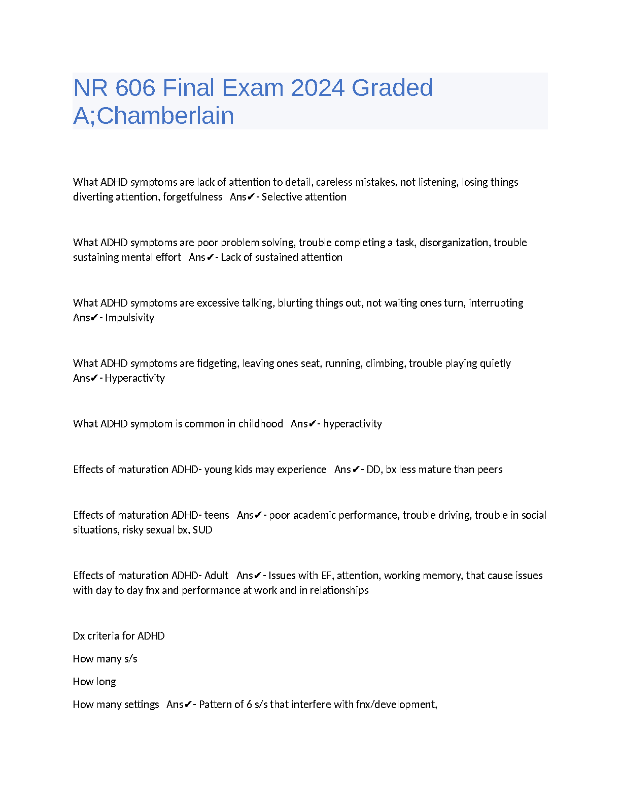 NR 606 Final Exam 2024 Graded: Chamberlain's Comprehensive Guide for Success