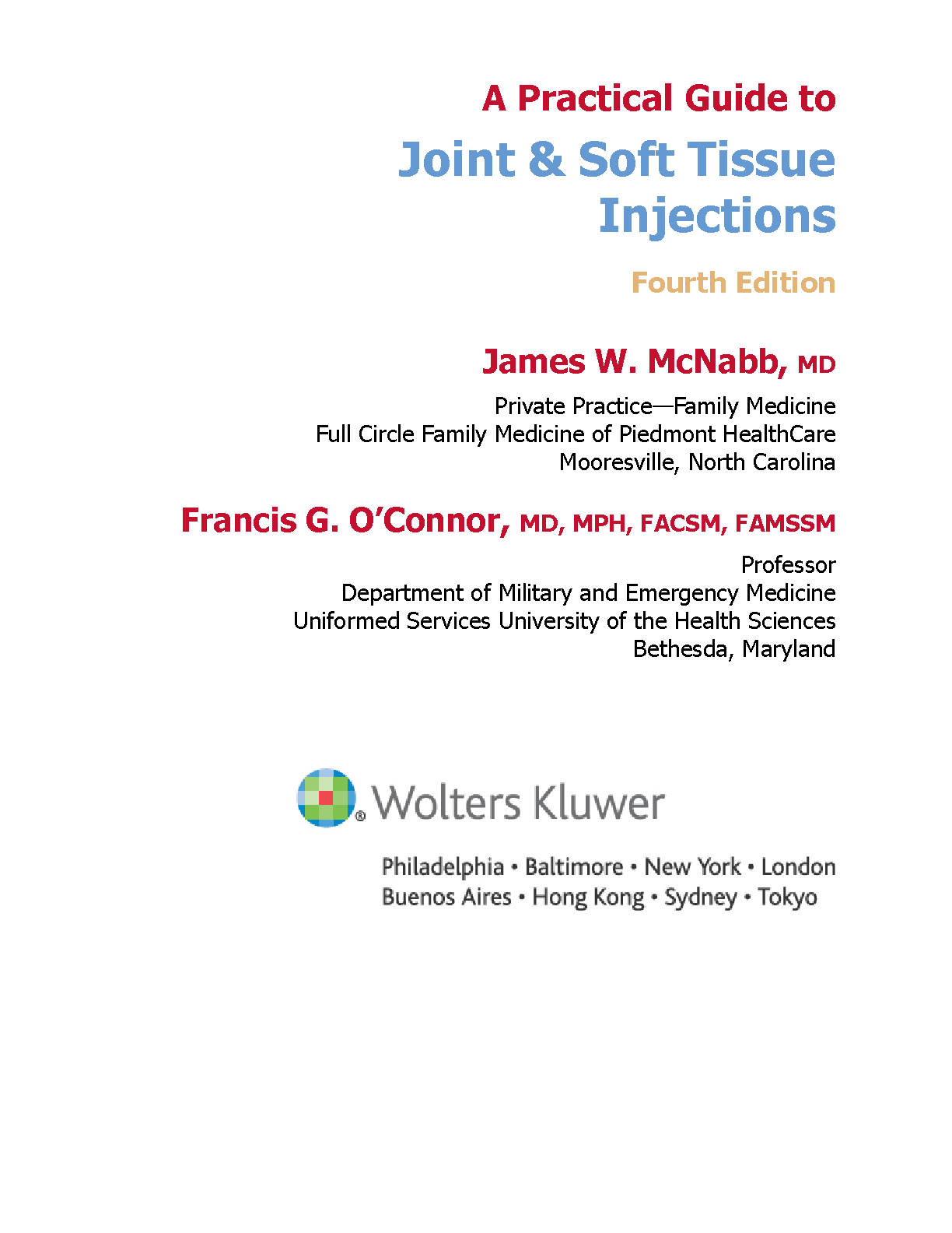 A Practical Guide to Joint & Soft Tissue Injections, Fourth Edition by James W. McNabb and Francis G. O'Connor