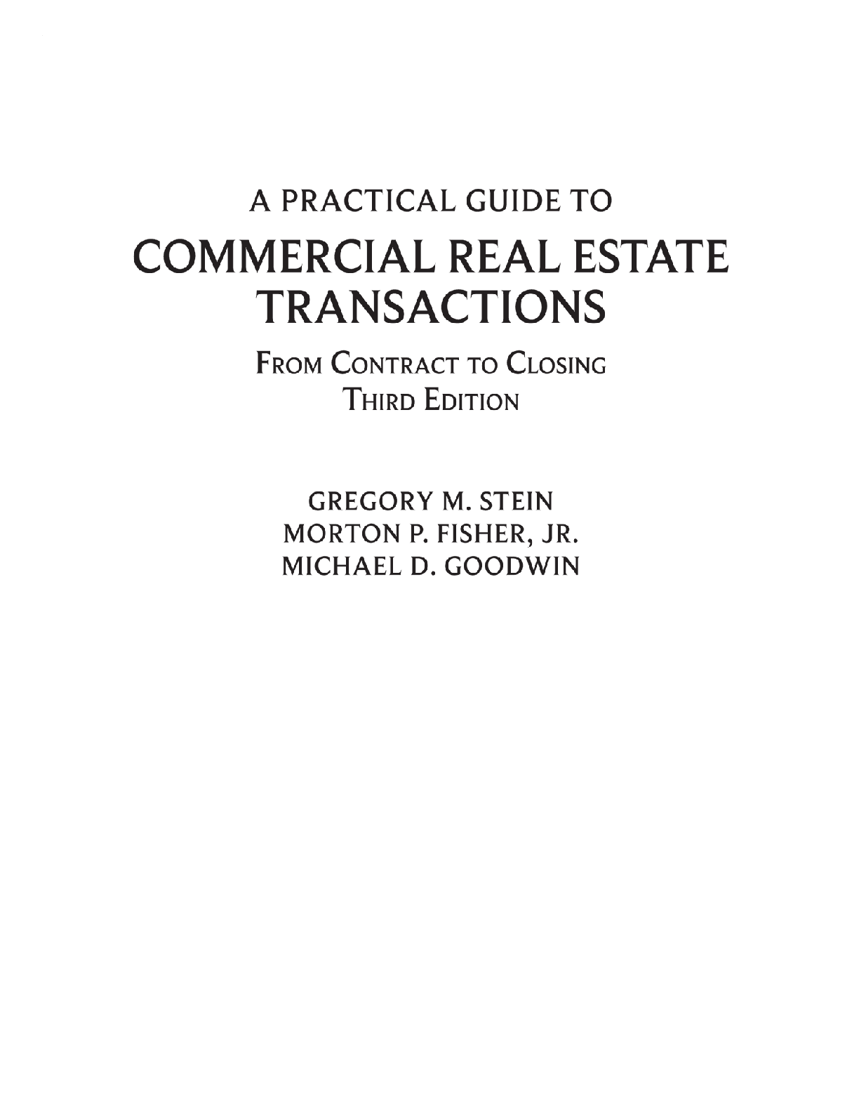 A Practical Guide to Commercial Real Estate Transactions, Third Edition by Gregory M. Stein, Morton P. Fisher Jr., and Michael D. Goodwin