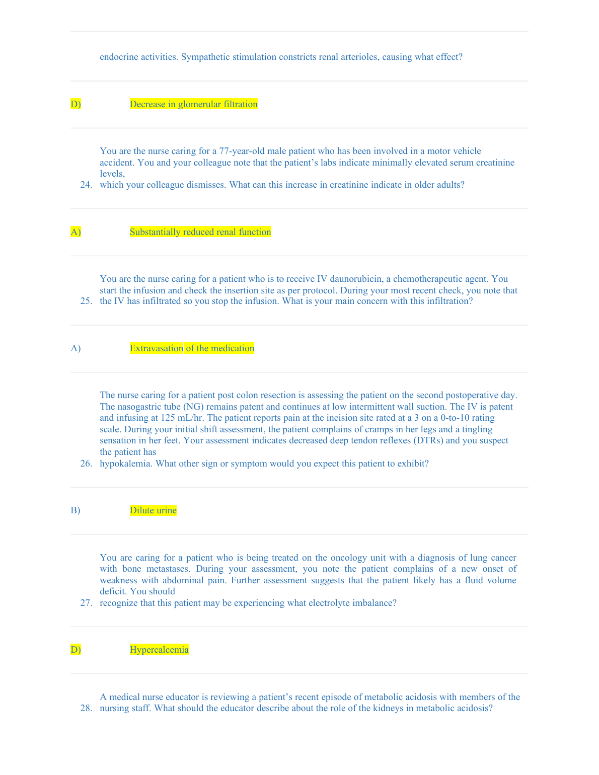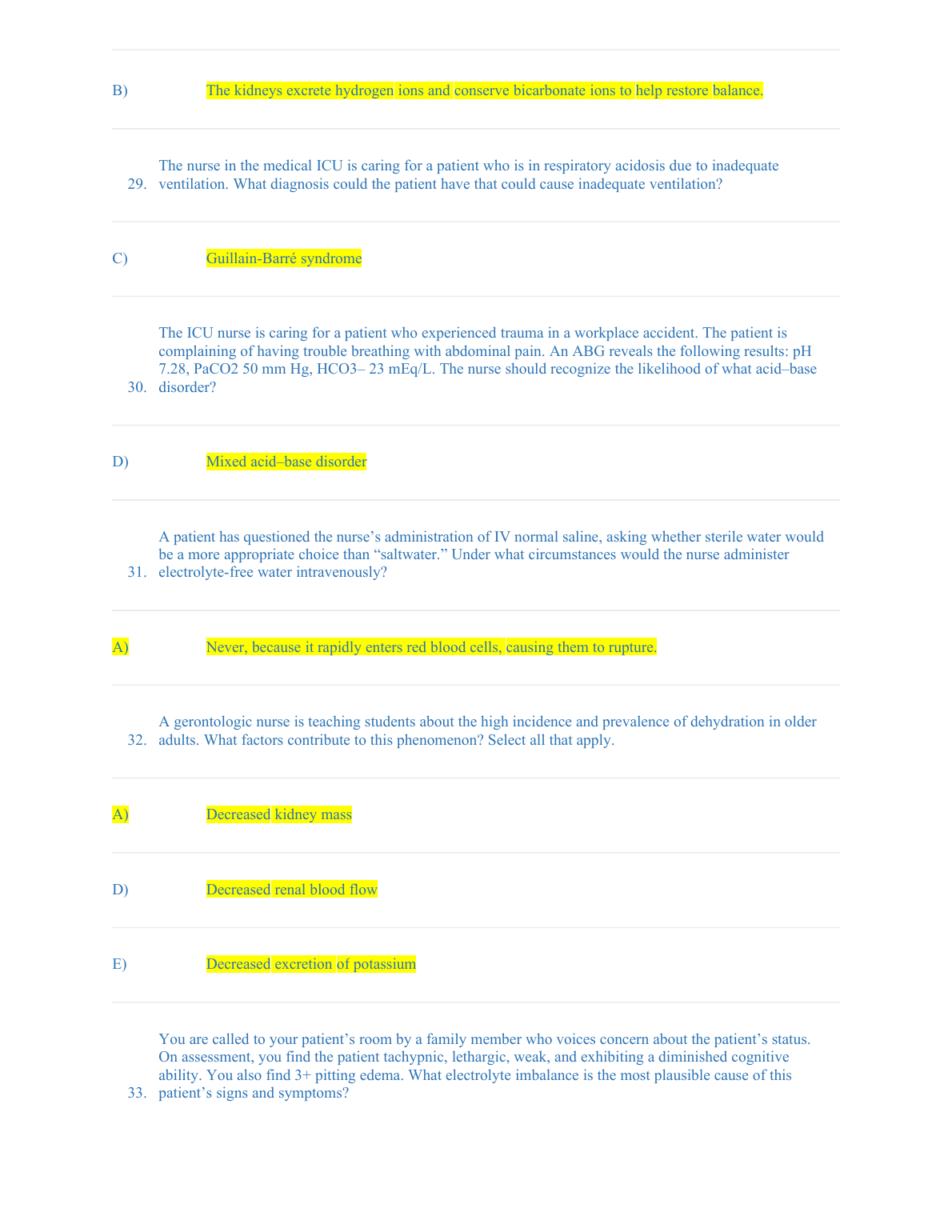 ATI MED SURG QUESTIONS FLUID AND ELETROLYTES BALANCED DISTURBANCES 100% CORRECT ANSWERS BEST RATED SOLUTION 2023