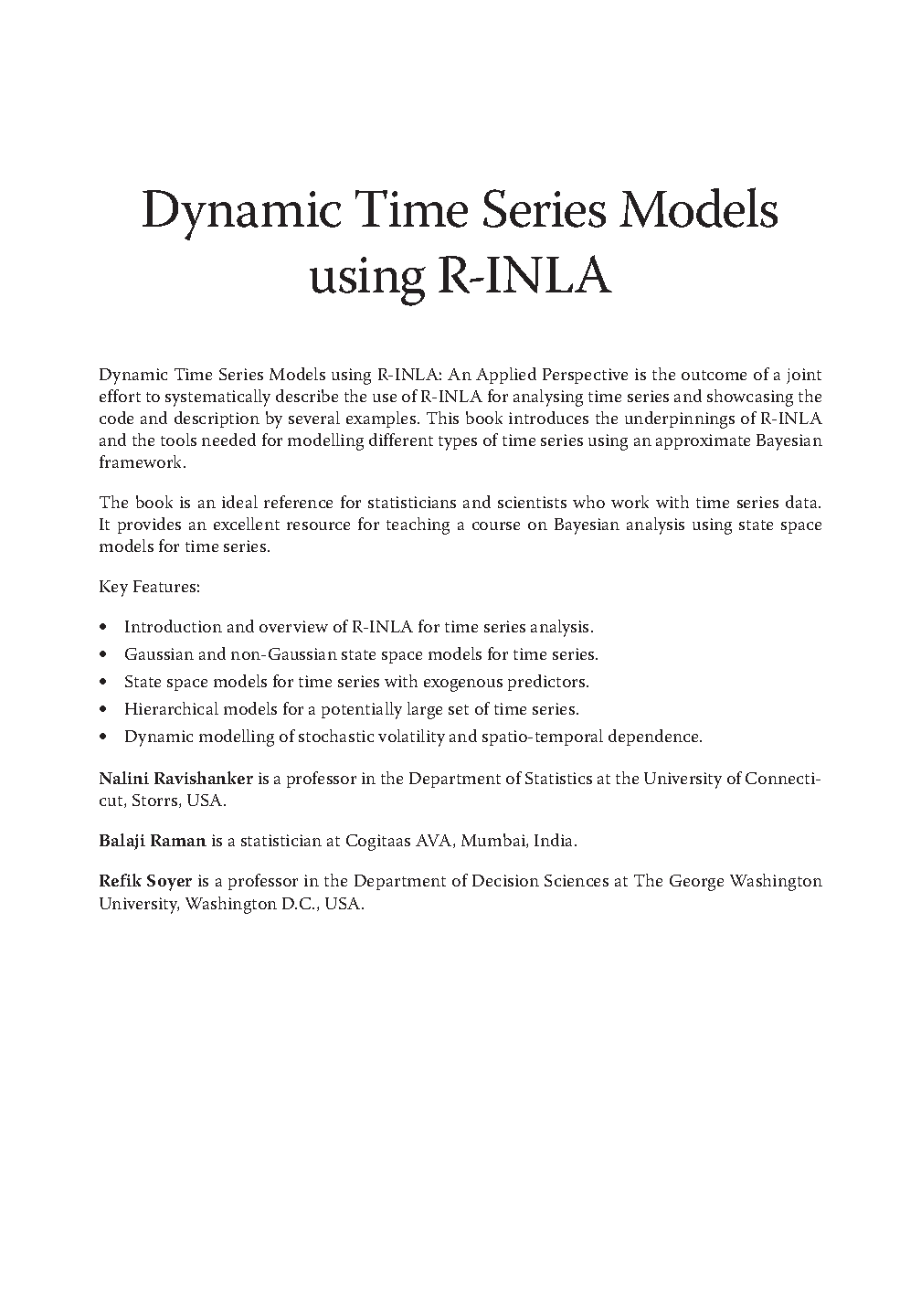 Dynamic Time Series Models Using R-INLA: An Applied Perspective by Nalini Ravishanker, Balaji Raman, and Refik Soyer