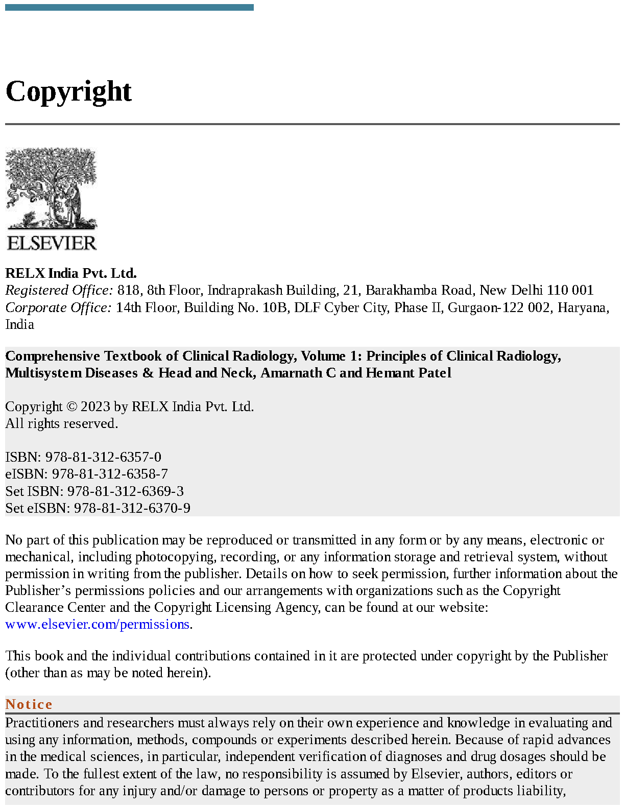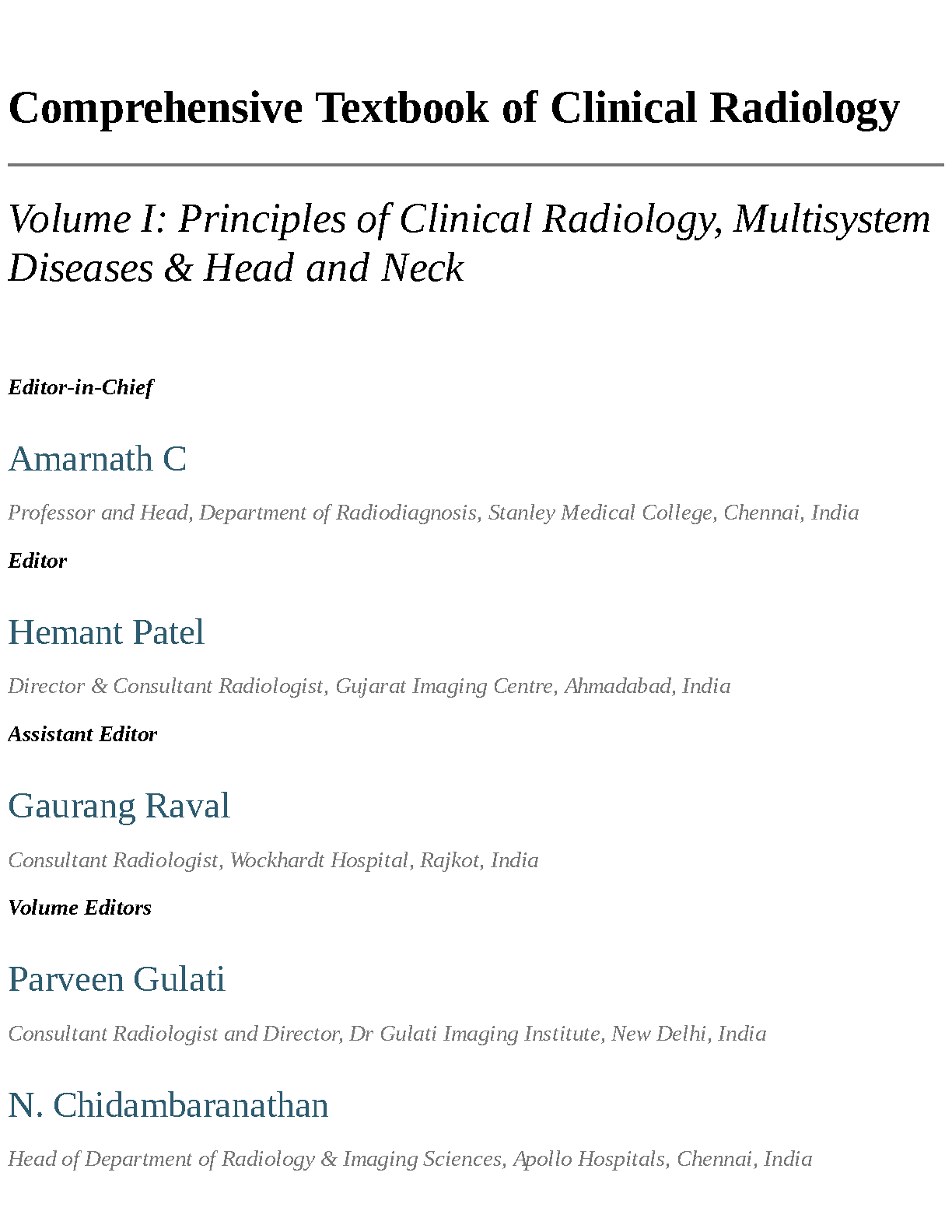 Comprehensive Textbook of Clinical Radiology, Volume I: Principles of Clinical Radiology, Multisystem Diseases & Head and Neck - Amarnath C, Hemant Patel, Parveen Gulati, N. Chidambaranathan, Anil T. Ahuja, A. Anbarasu, Abhishek Mahajan