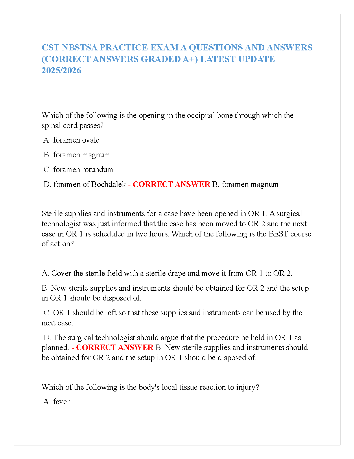 CST NBSTSA Practice Exam A Questions and Answers (2025/2026 Edition) by Unknown Authors