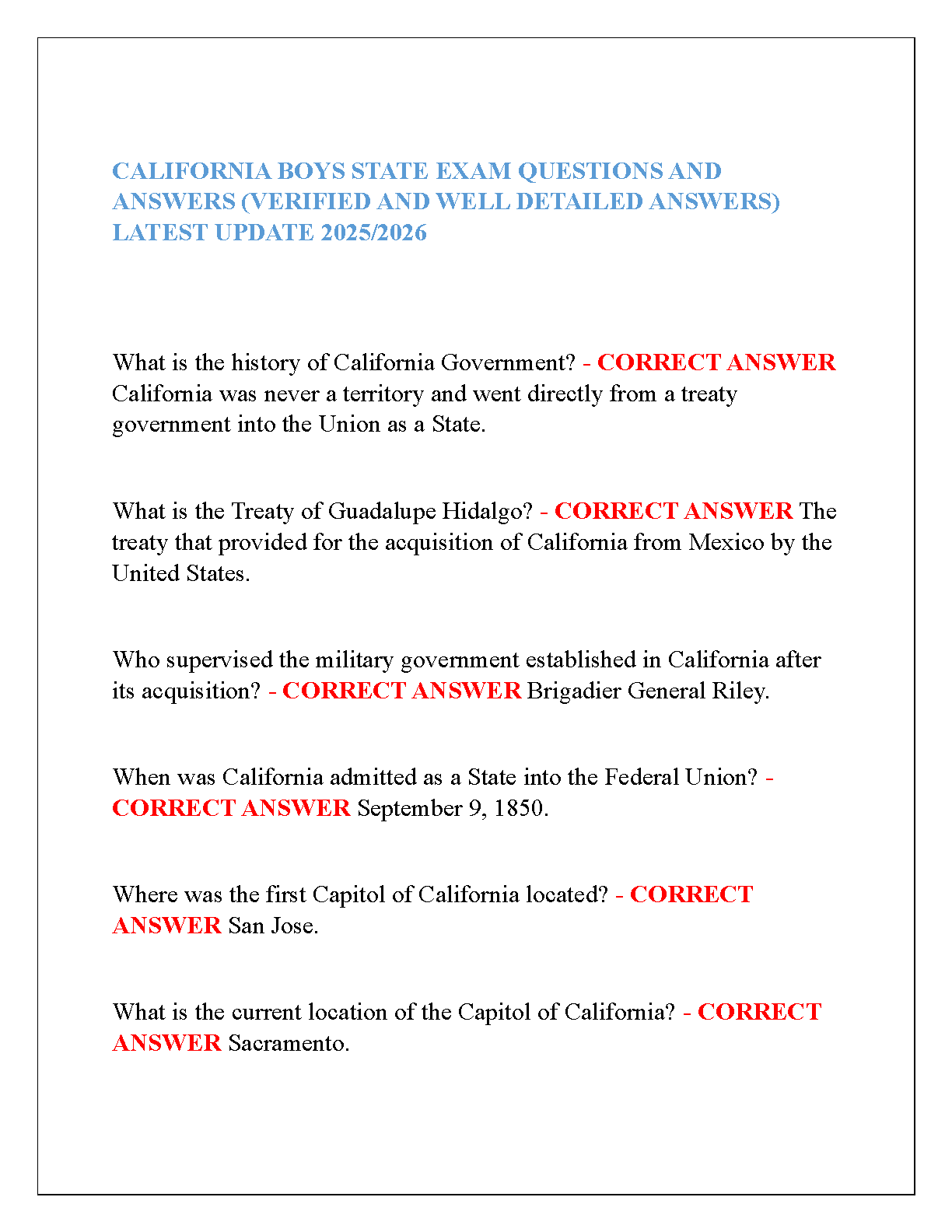 California Boys State Exam Questions and Answers 2025/2026 Edition: A Complete Guide for First-Time Passers