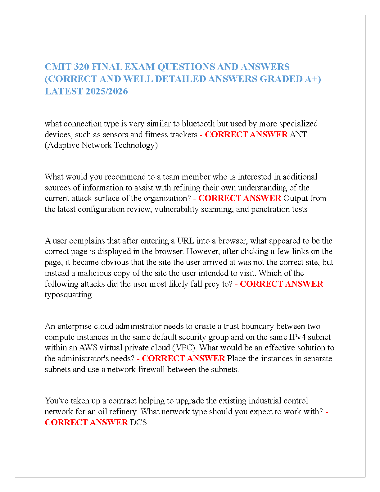 Ace your CMIT 320 final exam with this comprehensive guide containing detailed answers and explanations. Perfect for students aiming for an A+ and first-attempt exam success. This resource is updated for the 2025/2026 academic year.
