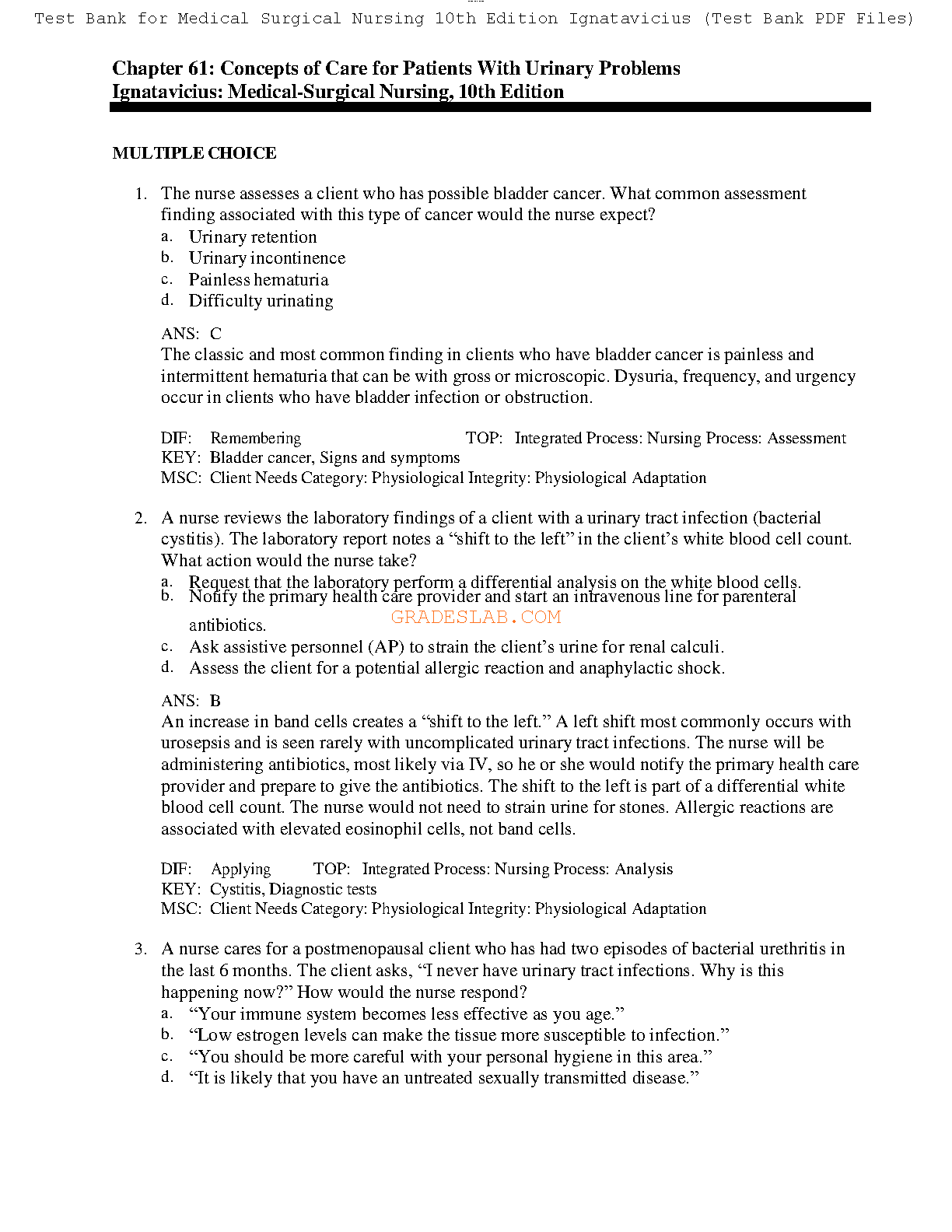 ATI MED SURG Chapter 61: Concepts of Care for Patients With Urinary Problems Ignatavicius: Medical-Surgical Nursing, 10th Edition COMPLETE SOLUTION RATED A+. DOWNLOAD on www.hackedexams.com INSTANTLY.