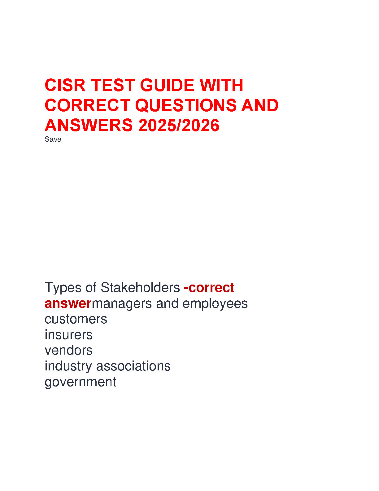 CISR Test Guide with Correct Questions and Answers 2025/2026 Edition
