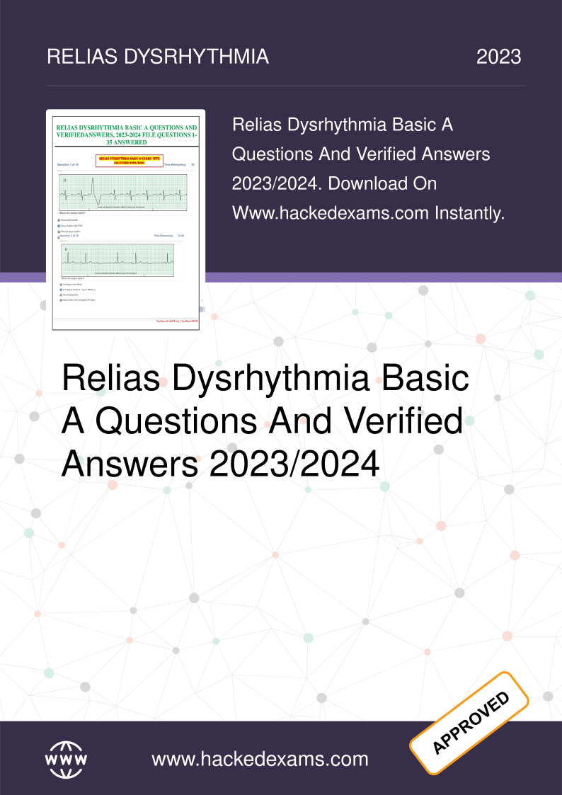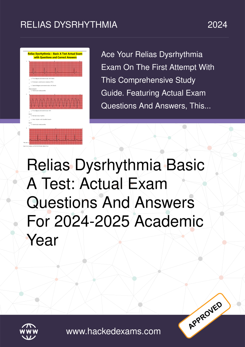 Ace your Relias Dysrhythmia exam with this comprehensive study guide. This 2025/2026 edition provides a complete exam with questions and answers covering key dysrhythmia concepts. Prepare effectively and pass on your first attempt.