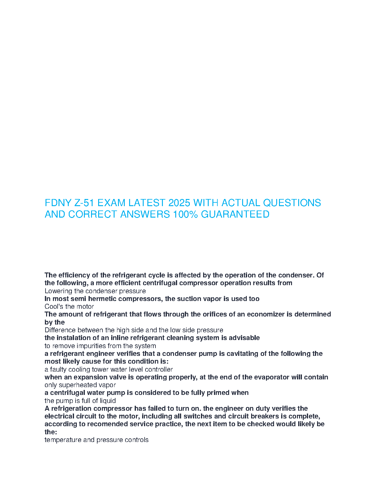 FDNY Z-51 Exam Latest 2025: Actual Questions and Correct Answers for First-Attempt Success
