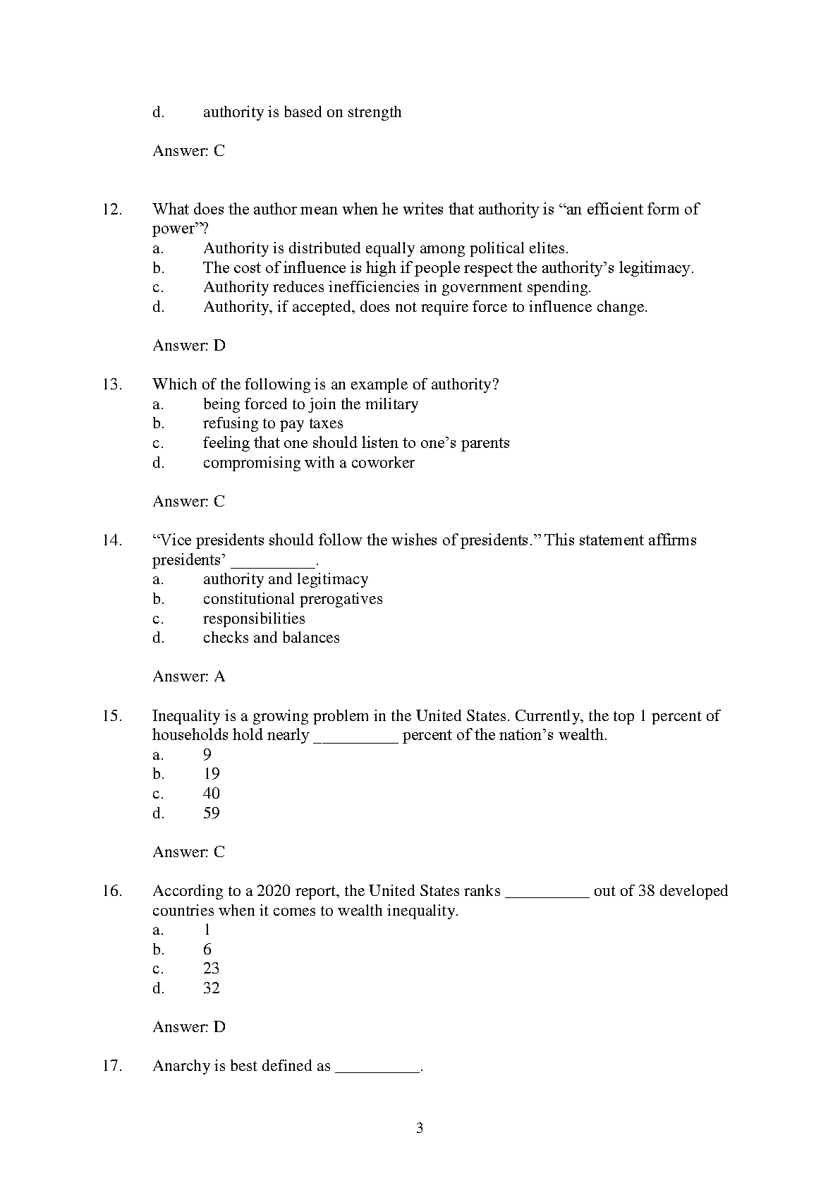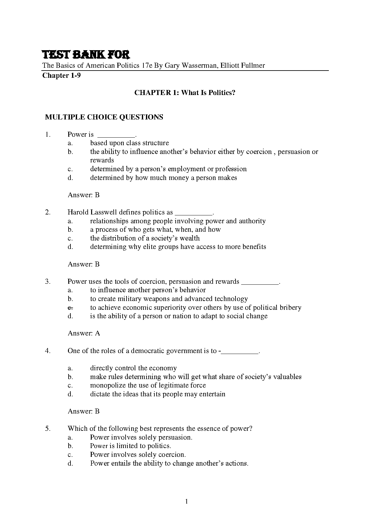 Test Bank for The Basics of American Politics 17th Edition by Gary Wasserman and Elliott Fullmer