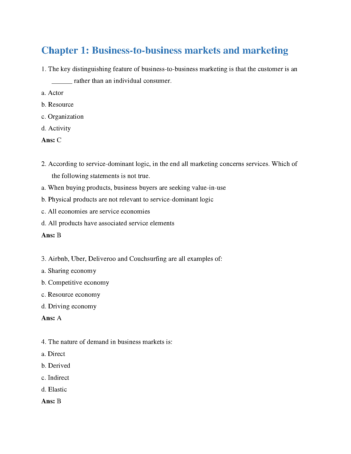 Test Bank for Business-to-Business Marketing Sixth Edition by Ross Brennan, Louise Canning, and Helen McGrath