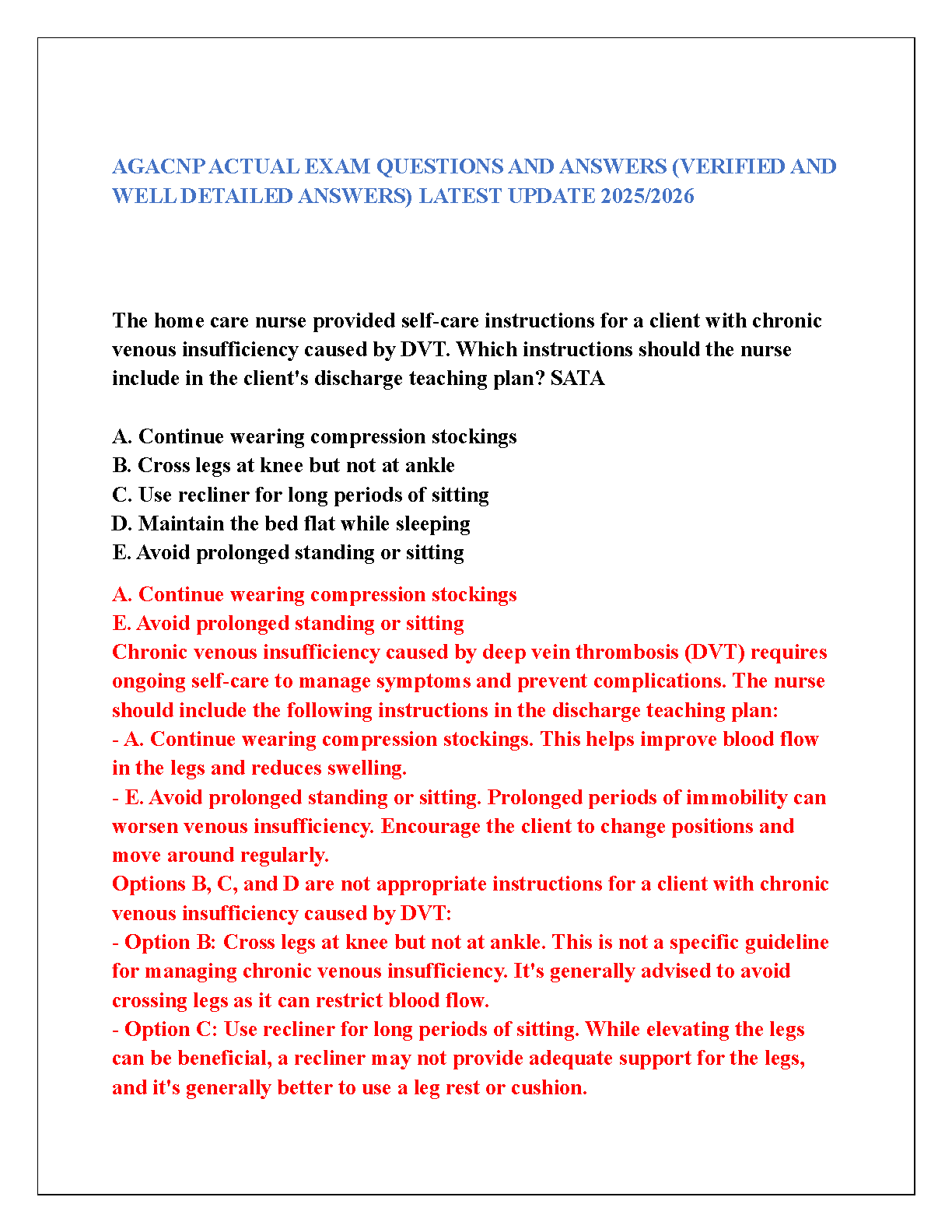 AGACNP Actual Exam Questions and Answers 2025/2026 Edition: Verified and Well-Detailed Answers for Passing Exams on the First Attempt