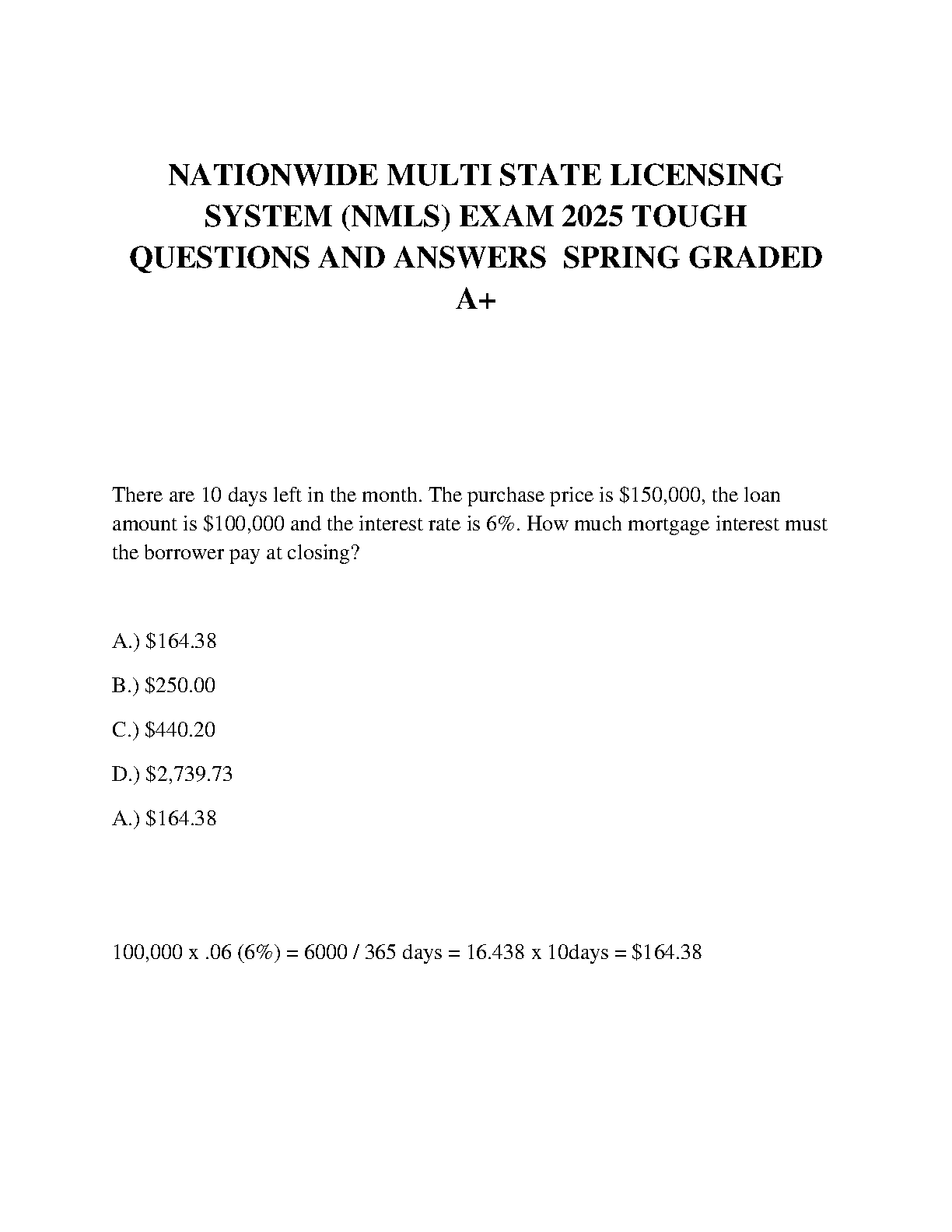 Nationwide Multi-State Licensing System (NMLS) Exam 2025 Tough Questions and Answers Spring Graded - A+ Edition