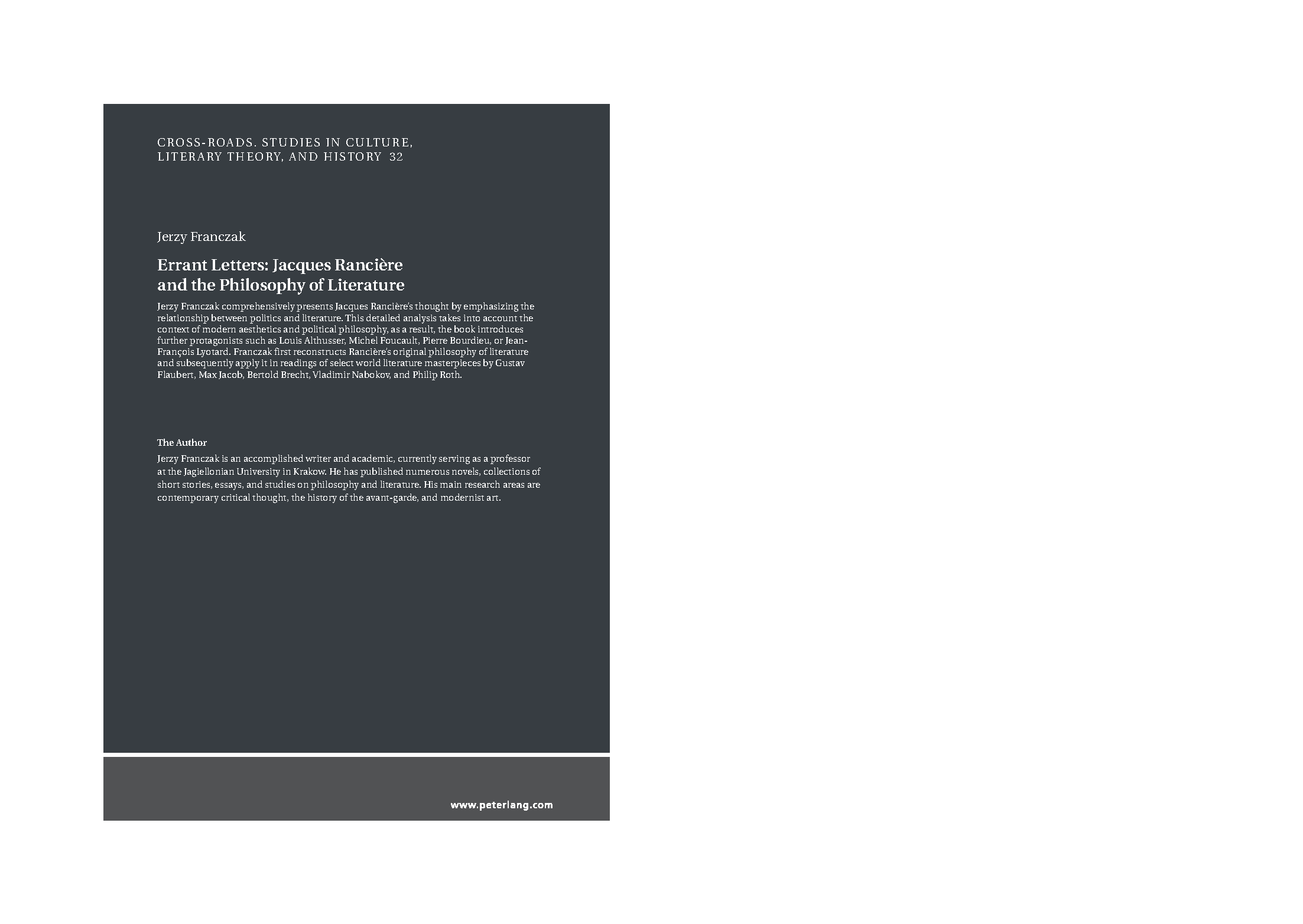 Explore the insightful analysis of Jacques Rancière's philosophy of literature presented in Jerzy Franczak's "Errant Letters." This book delves into the intricate relationship between literature and philosophy, offering a captivating perspective on literary theory. Ideal for literature students and scholars seeking a deeper understanding of Rancière's work.