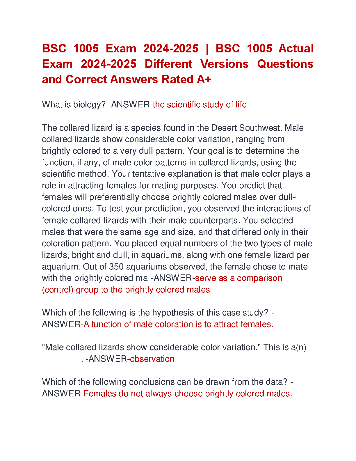 BSC 1005 Exam 2024-2025: Different Versions, Questions, and Answers Rated A+ by [Author Name(s) - if available online]