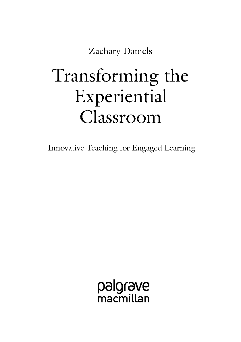 Transforming the Experiential Classroom: Innovative Teaching for Engaged Learning by Zachary Daniels - 1st Edition