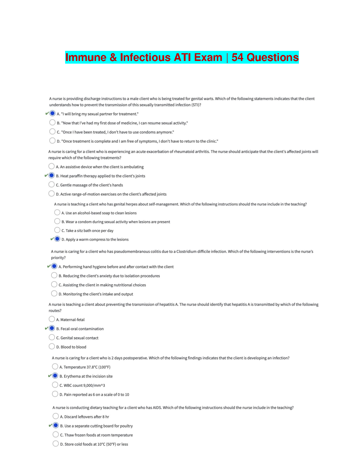 Immune & Infectious ATI Exam: 54 Questions by Unknown Author