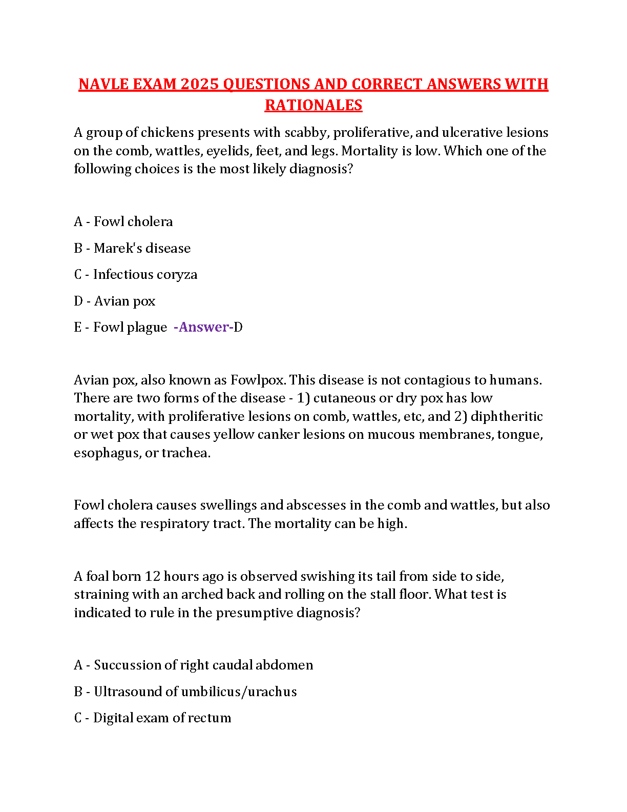NAVLE Exam 2025 Questions and Answers with Rationales by Anonymous Author