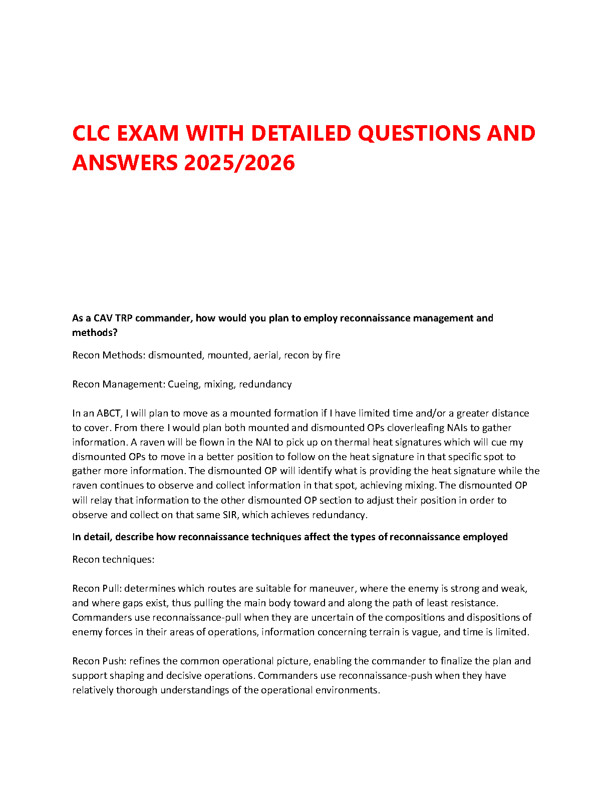 CLC Exam with Detailed Questions and Answers 2025/2026 by Unknown Author