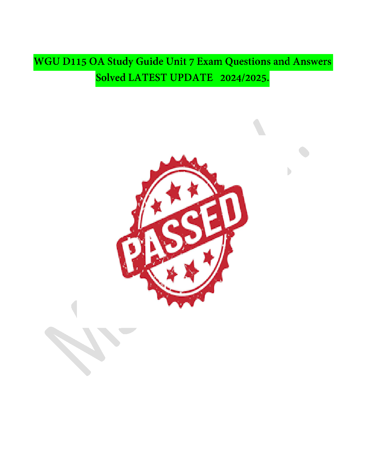 Ace your WGU D115 Unit 7 exam with this comprehensive study guide, featuring the latest 2024-2025 updates. Our solved questions and answers will ensure your success, helping you avoid resits and graduate with confidence.
