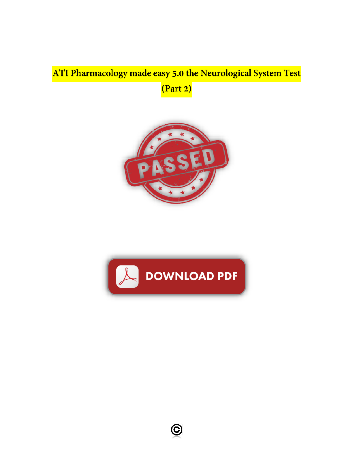 ATI Pharmacology Made Easy 5.0 Neurological System Test (Part 2) by Assessment Technologies Institute