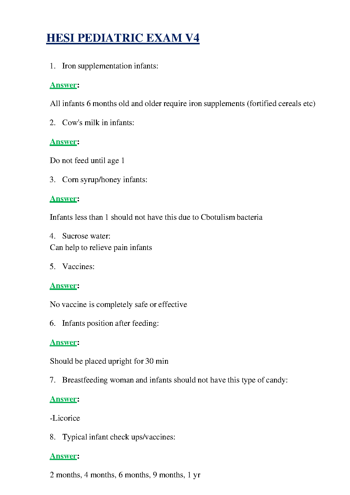 Ace your HESI Pediatric exam with this expertly crafted study guide, designed to help you pass on your first try. This resource covers key concepts and practice questions to ensure your preparedness for the exam. Avoid resits and achieve academic excellence with our comprehensive HESI Pediatric Exam V4 guide.