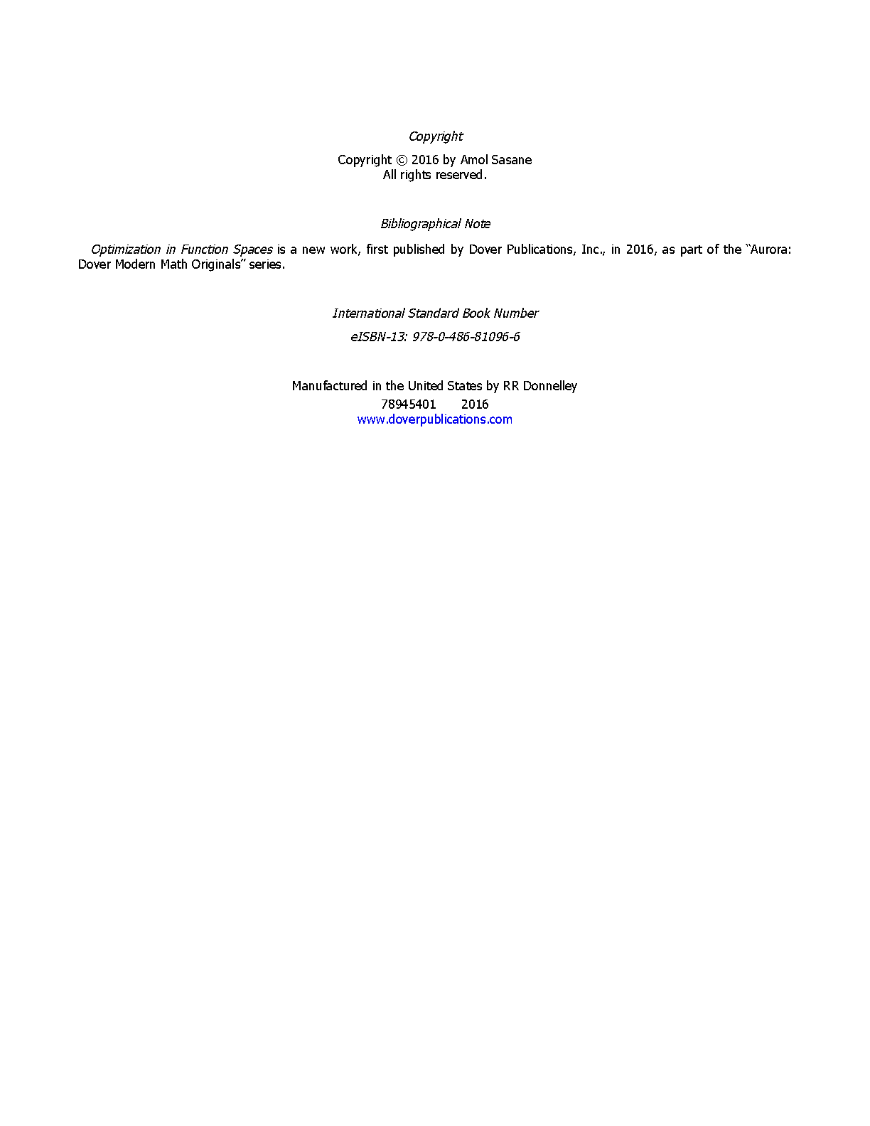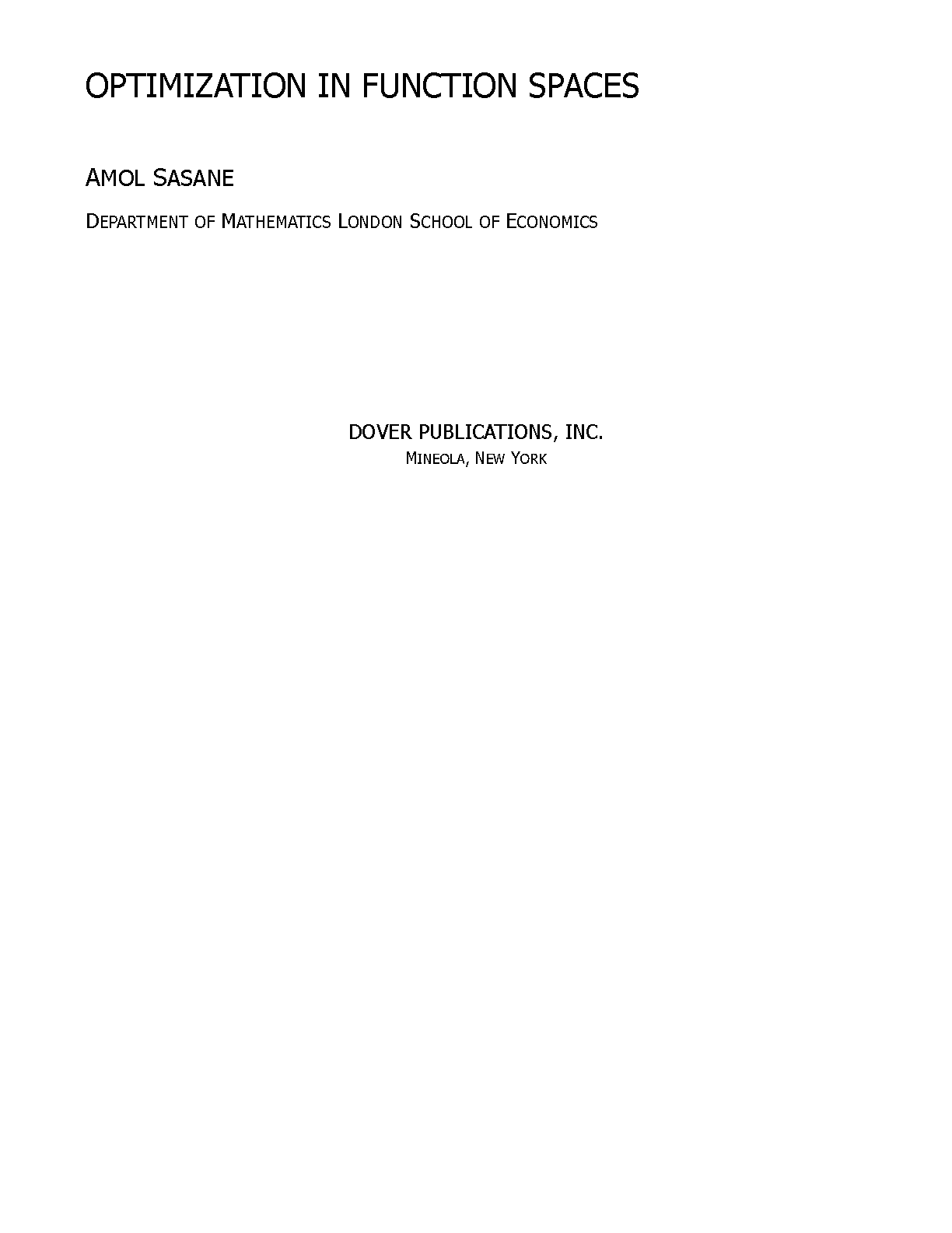 Optimization in Function Spaces by Amol Sasane (Dover Modern Math Originals Edition)