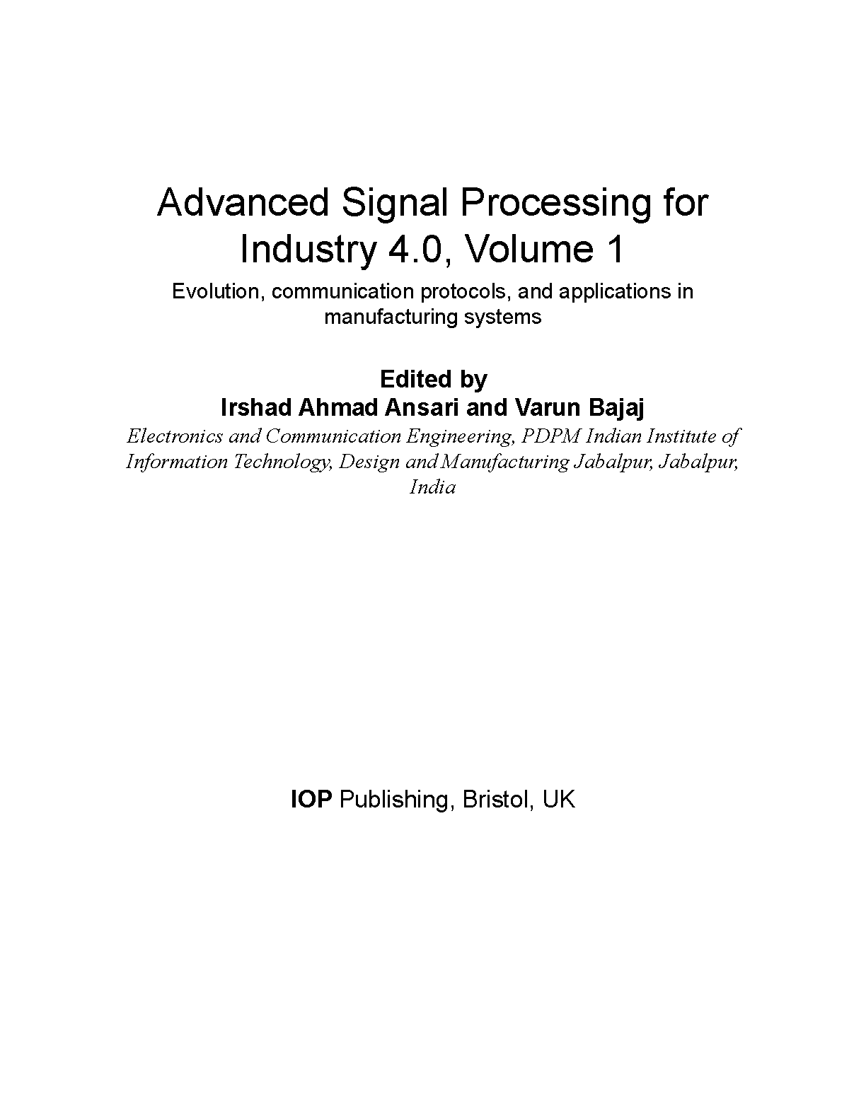 Advanced Signal Processing for Industry 4.0, Volume 1: Edited by Irshad Ahmad Ansari and Varun Bajaj