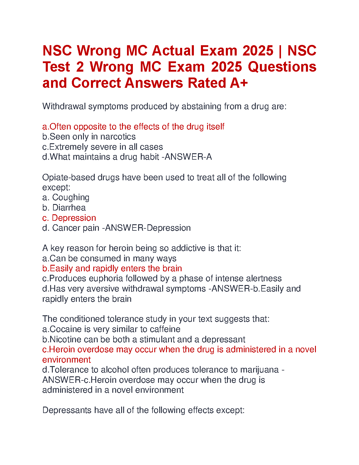 NSC Wrong MC Actual Exam 2025 and Correct Answers Rated A+ by [Author Name Not Found]