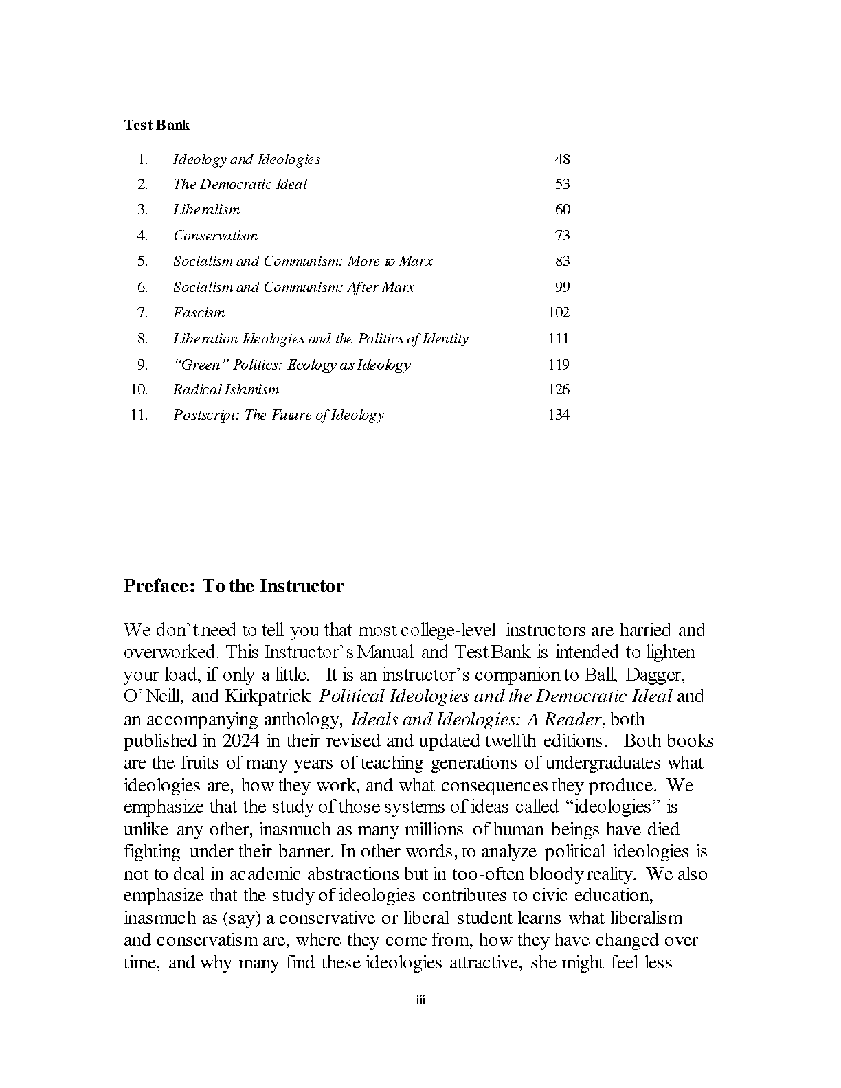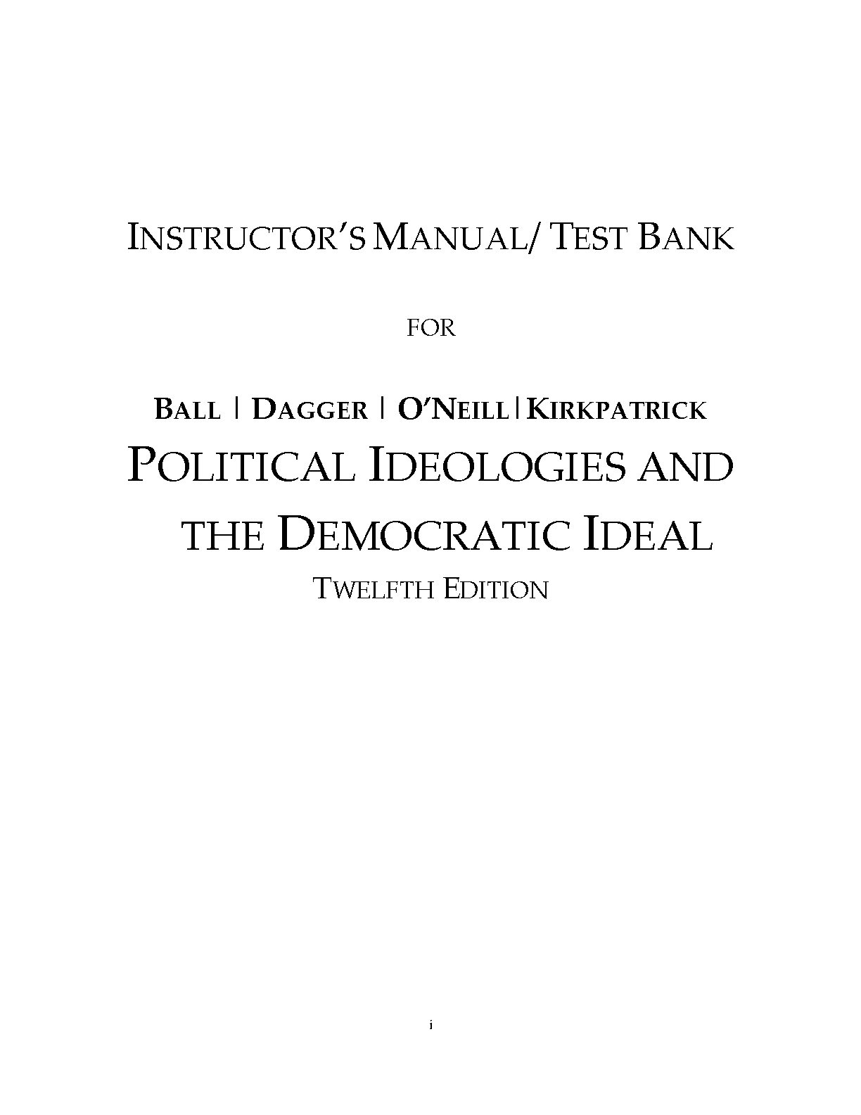 Political Ideologies and the Democratic Ideal Twelfth Edition Test Bank by Ball, Dagger, O'Neill, and Kirkpatrick