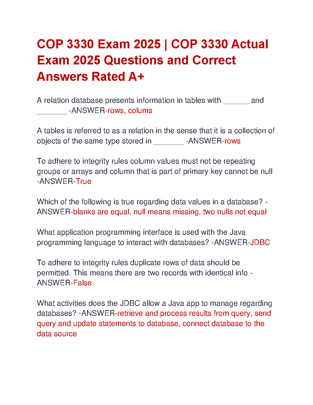 Ace your COP 3330 exam with this comprehensive study guide featuring actual exam questions and A+ rated answers. Perfect for acing your exams and avoiding resits!