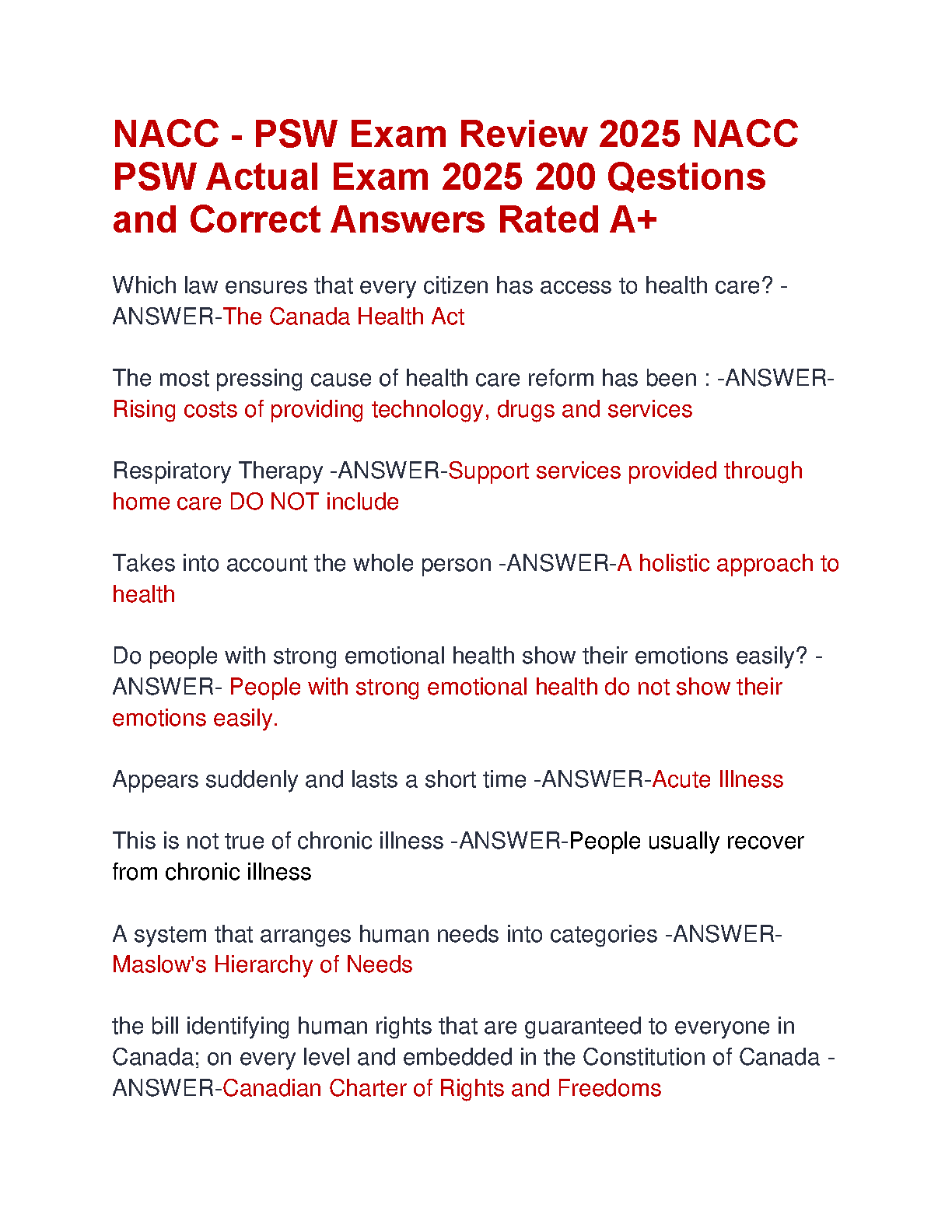 NACC PSW Exam Review 2025: 200 Questions and Answers Rated A+ by [Author Name(s) - if available online, otherwise leave blank]