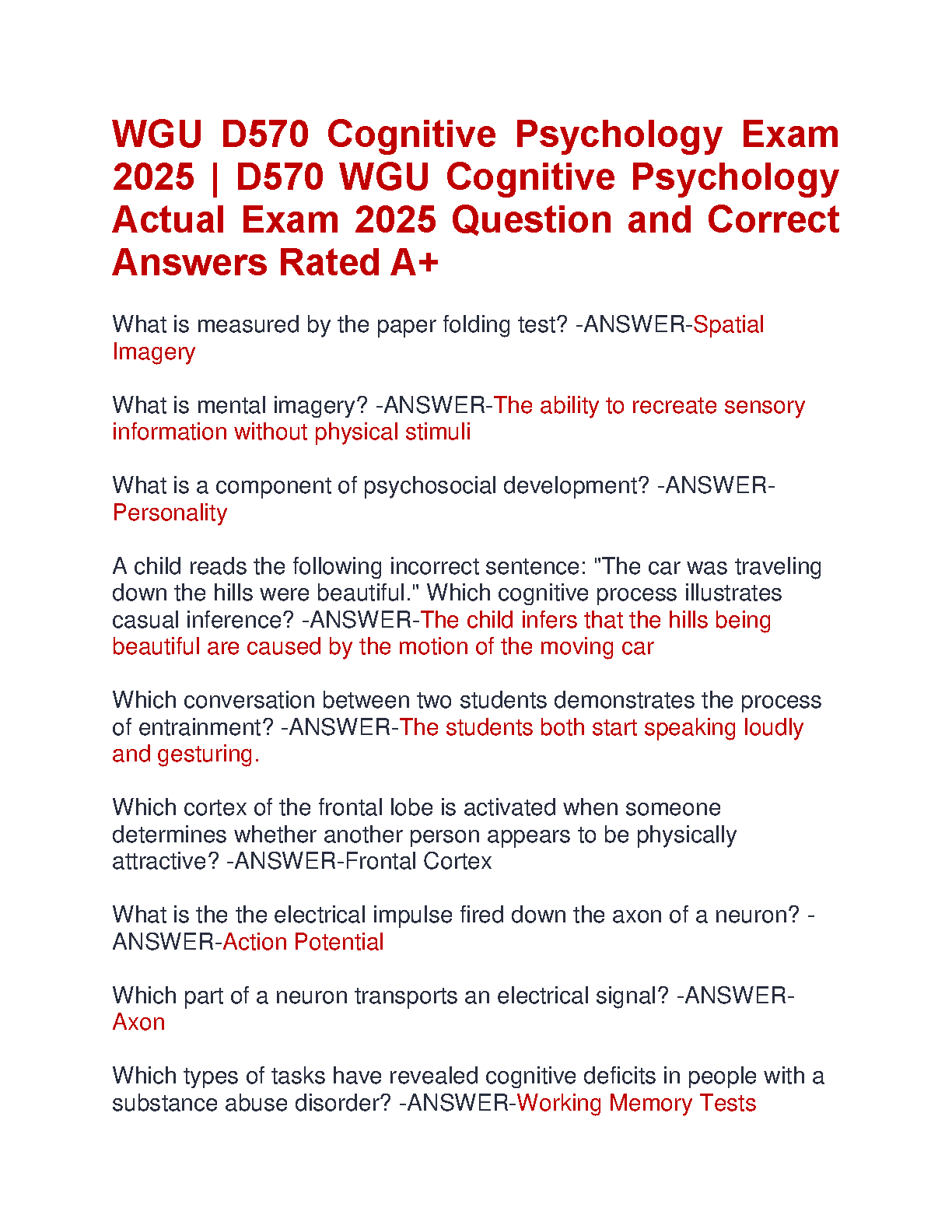 WGU D570 Cognitive Psychology Exam 2025: Actual Exam Questions and Answers Rated A+ by [Author Name to be added after online search]