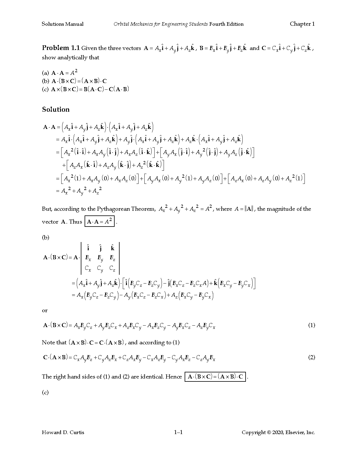 Solutions Manual for Orbital Mechanics for Engineering Students, Fourth Edition by Howard D. Curtis