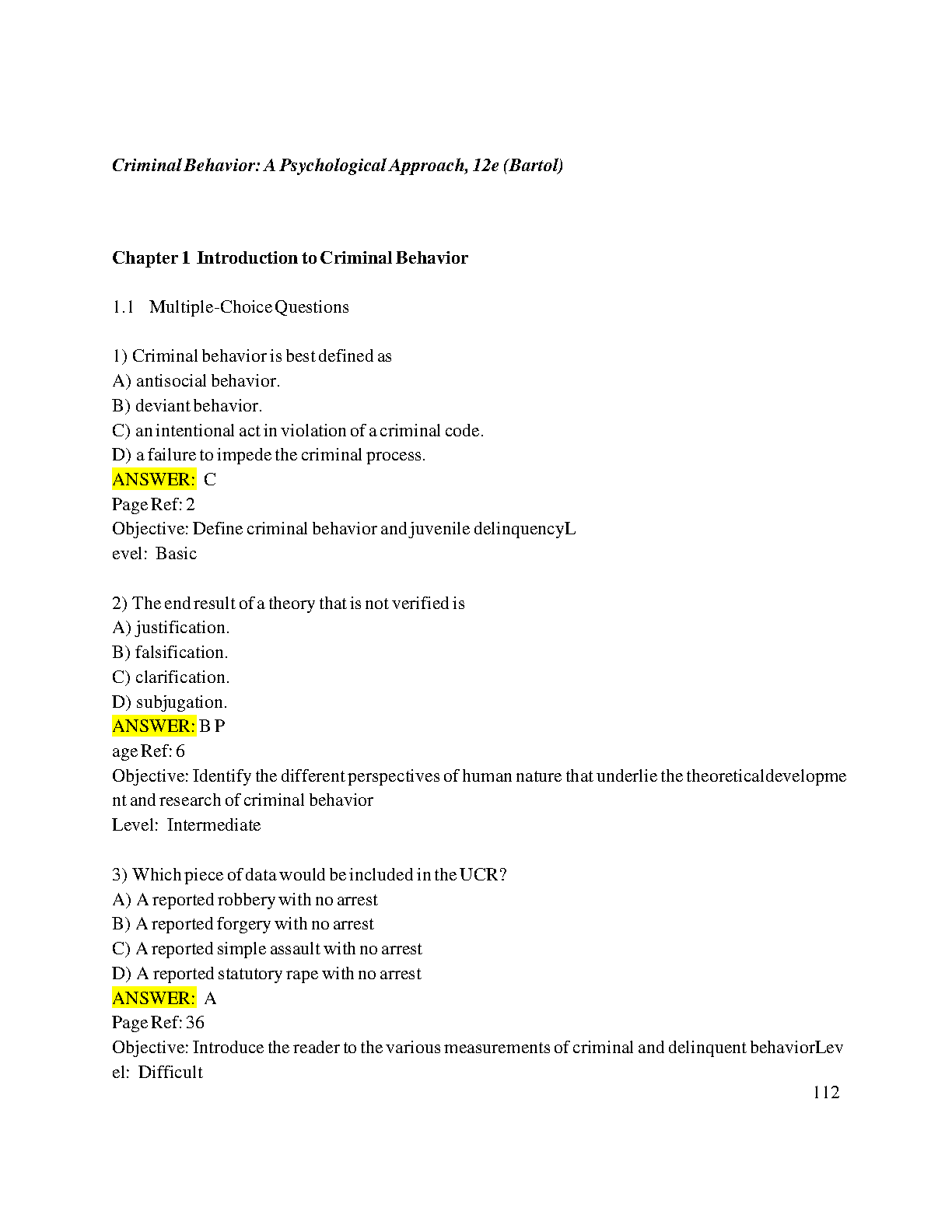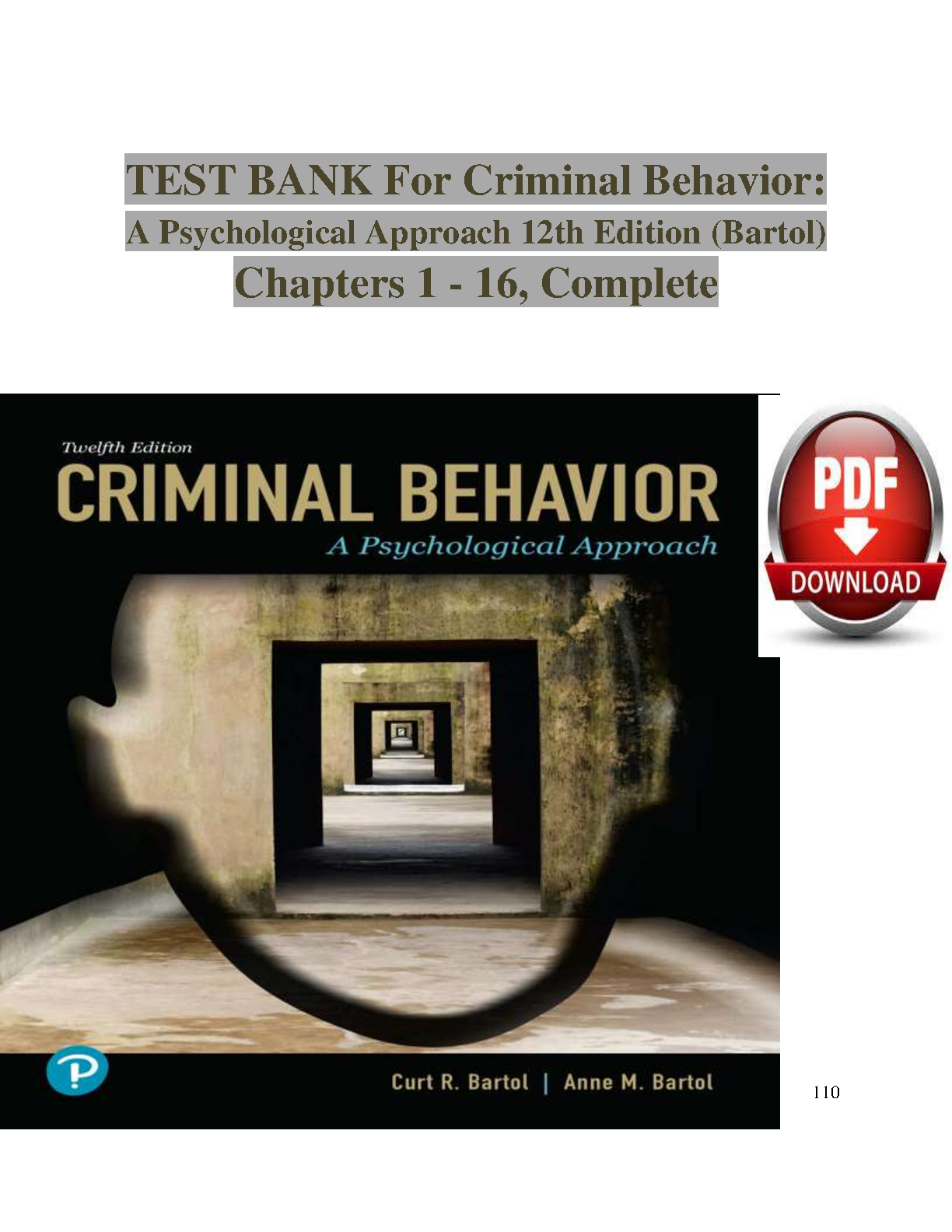 Criminal Behavior: A Psychological Approach, 12th Edition Test Bank by Curt R. Bartol and Anne M. Bartol