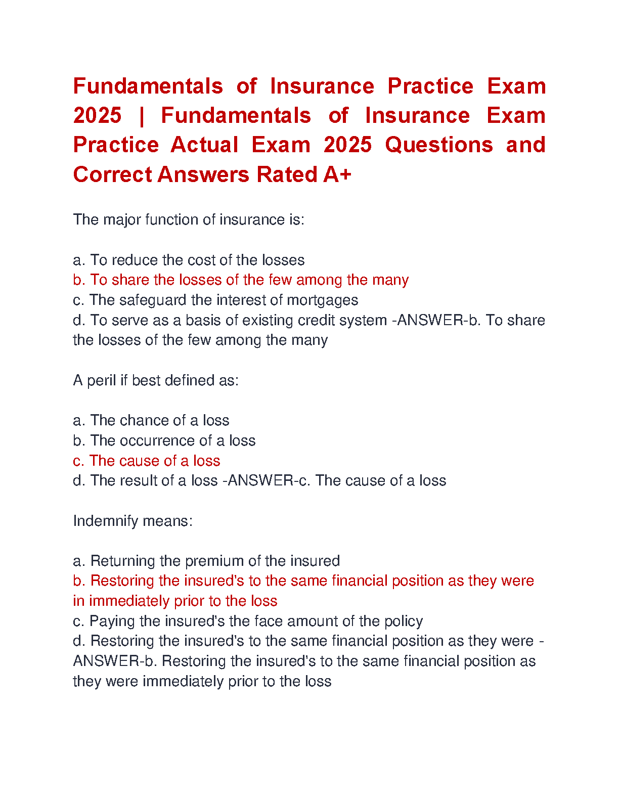 Fundamentals of Insurance Practice Exam 2025: Questions and Correct Answers by [Author Name]