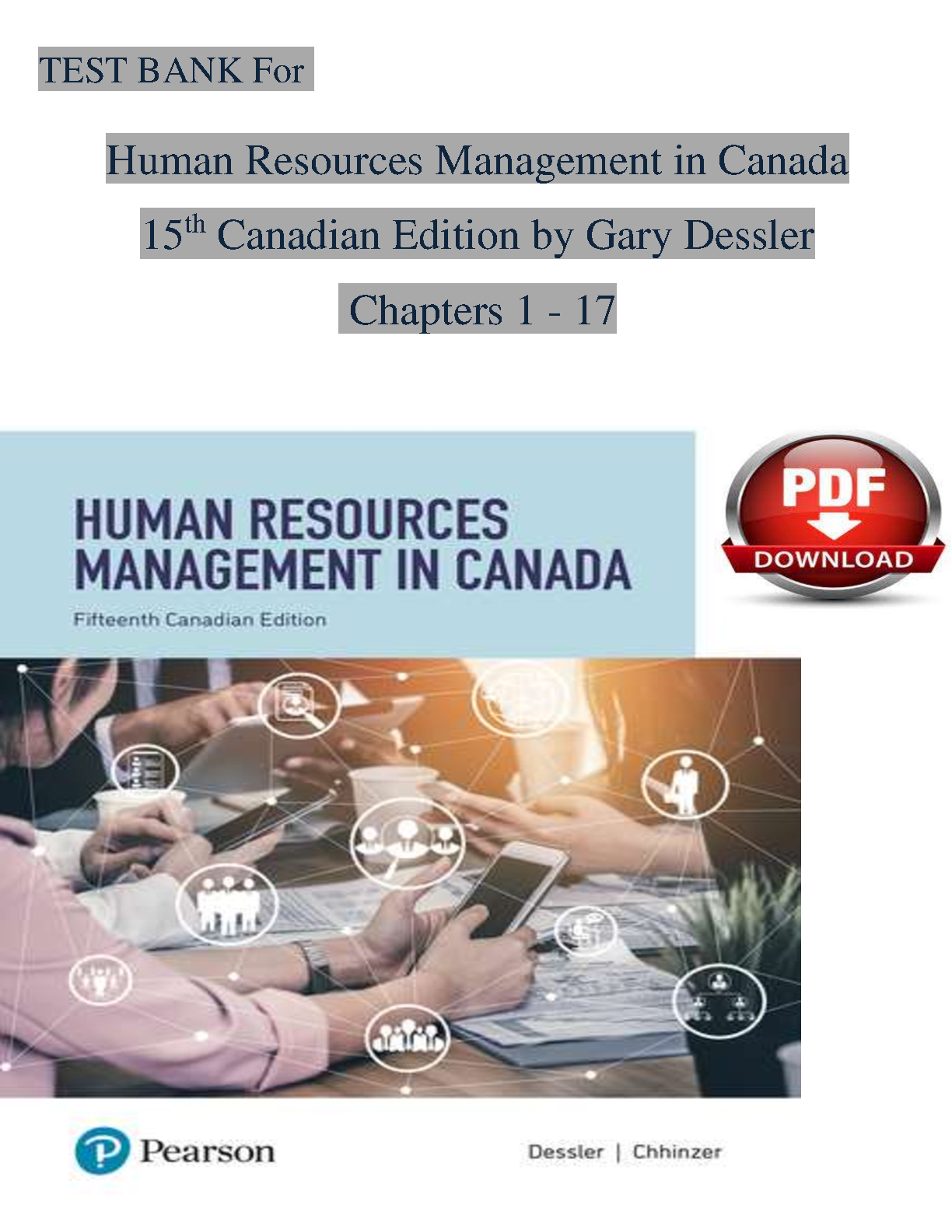Access this comprehensive test bank for Human Resources Management in Canada, 15th Canadian Edition, by Gary Dessler and B. Chhinzer. Prepare effectively for exams and boost your understanding of key concepts with this valuable resource, covering chapters 1-17. Ace your exams on the first attempt and avoid resits.
