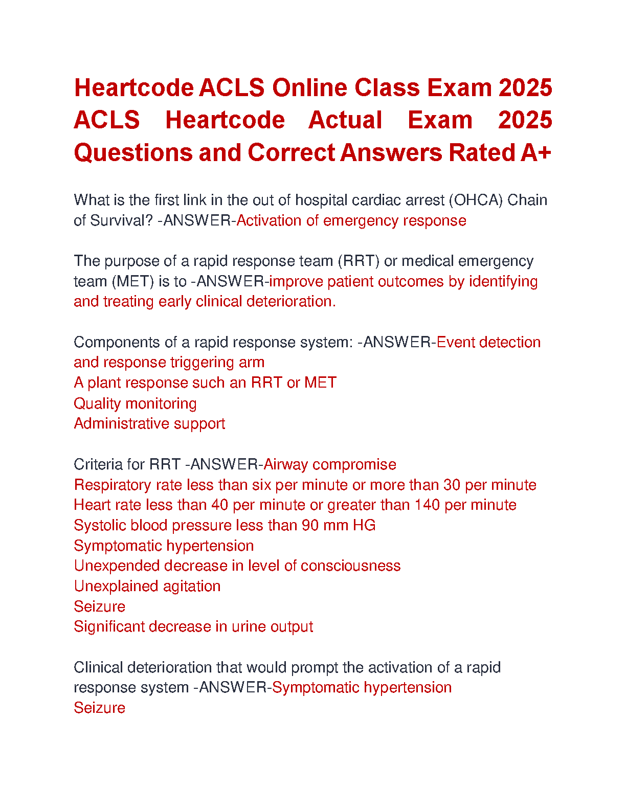 Heartcode ACLS Online Class Exam 2025 Questions and Correct Answers Rated A+ by [Author Name if available online]