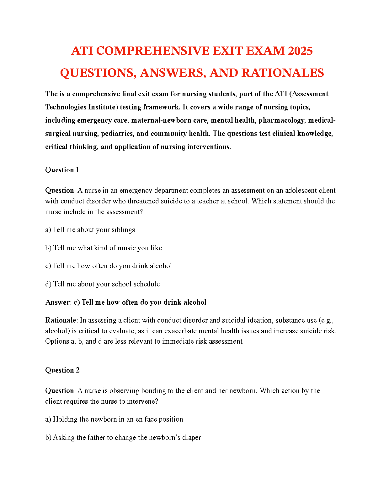 ATI Comprehensive Exit Exam 2025 Questions, Answers, and Rationales by Assessment Technologies Institute