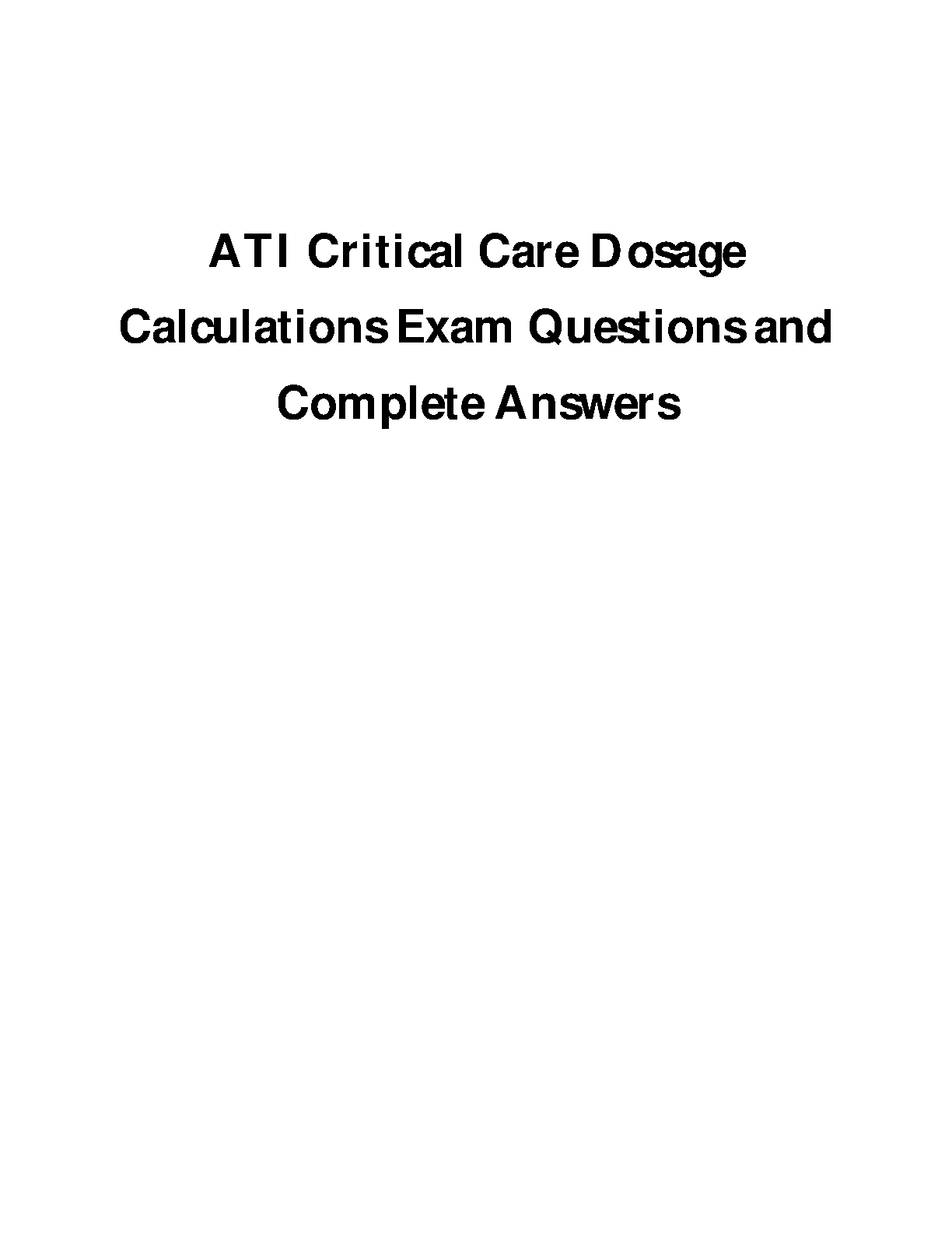 ATI Critical Care Dosage Calculations Exam Questions and Complete Answers: 2024-2025 Edition