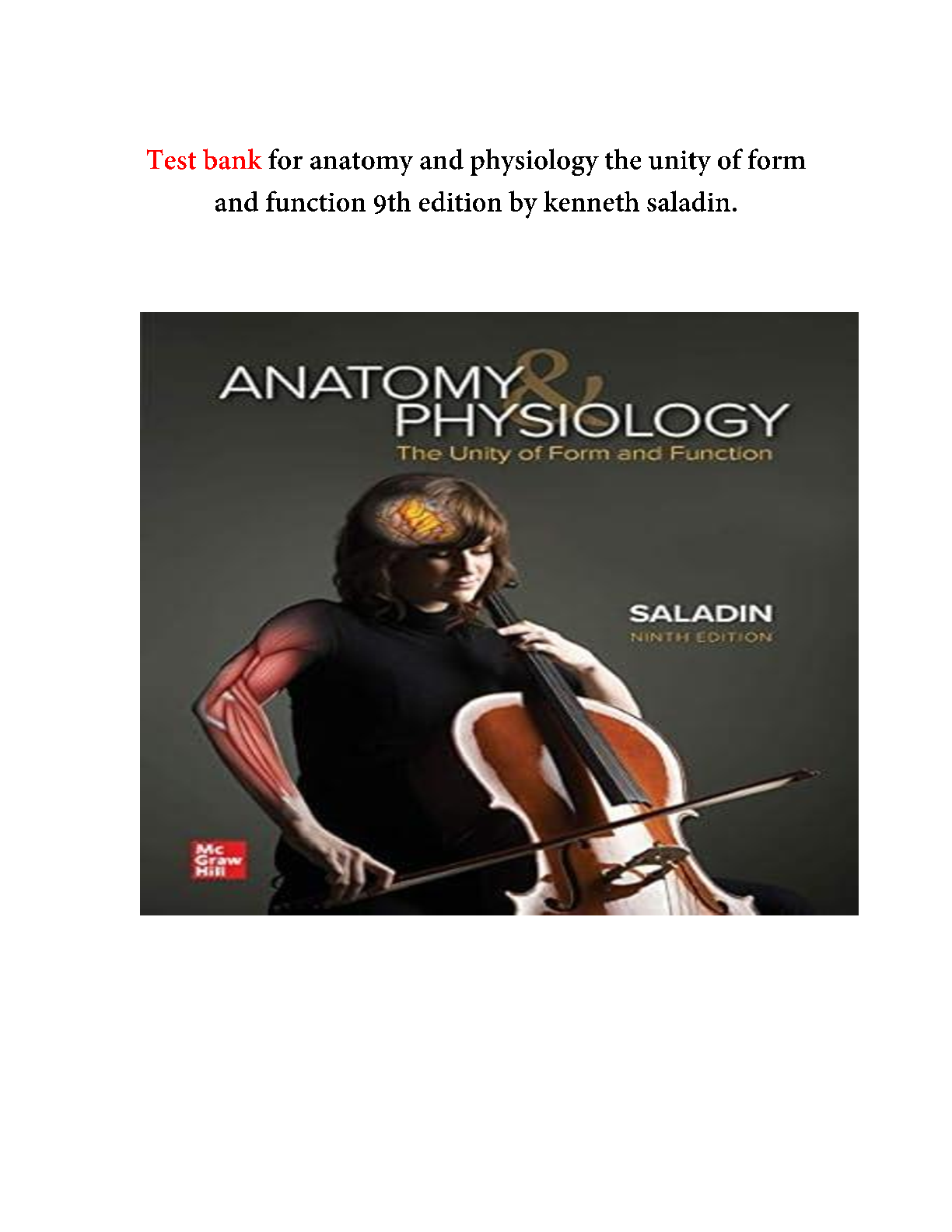 Anatomy & Physiology: The Unity of Form and Function, 9th Edition Test Bank by Kenneth Saladin
