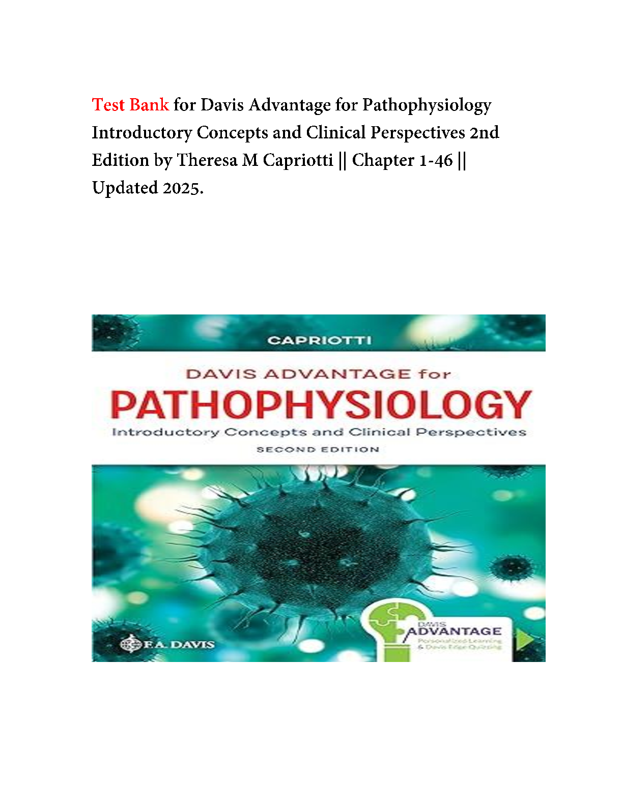 Davis Advantage for Pathophysiology: Introductory Concepts and Clinical Perspectives 2nd Edition Test Bank by Theresa M. Capriotti