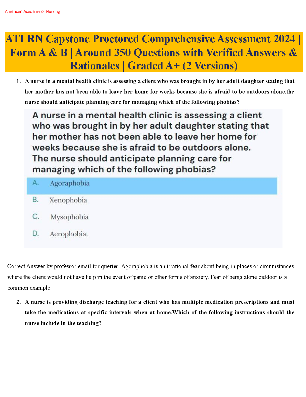 ATI RN Capstone Proctored Comprehensive Assessment 2024: 350 Questions with Verified Answers & Rationales (2 Versions) by American Academy of Nursing