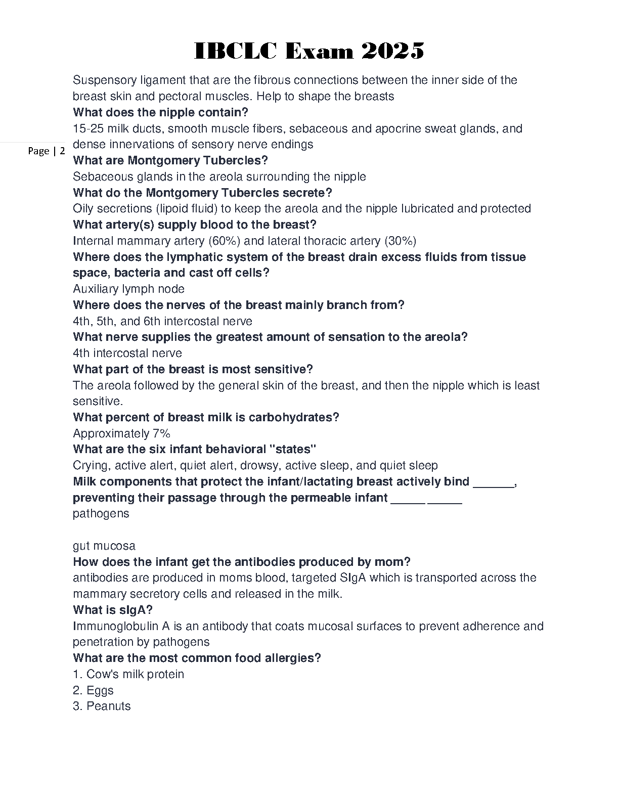IBCLC Exam Questions and Answers 2024-2025 Edition by Unknown Author