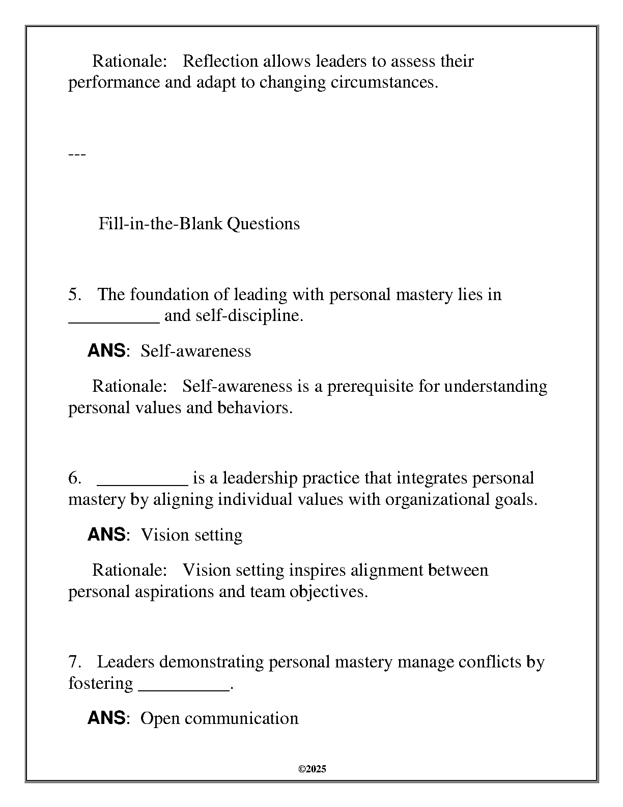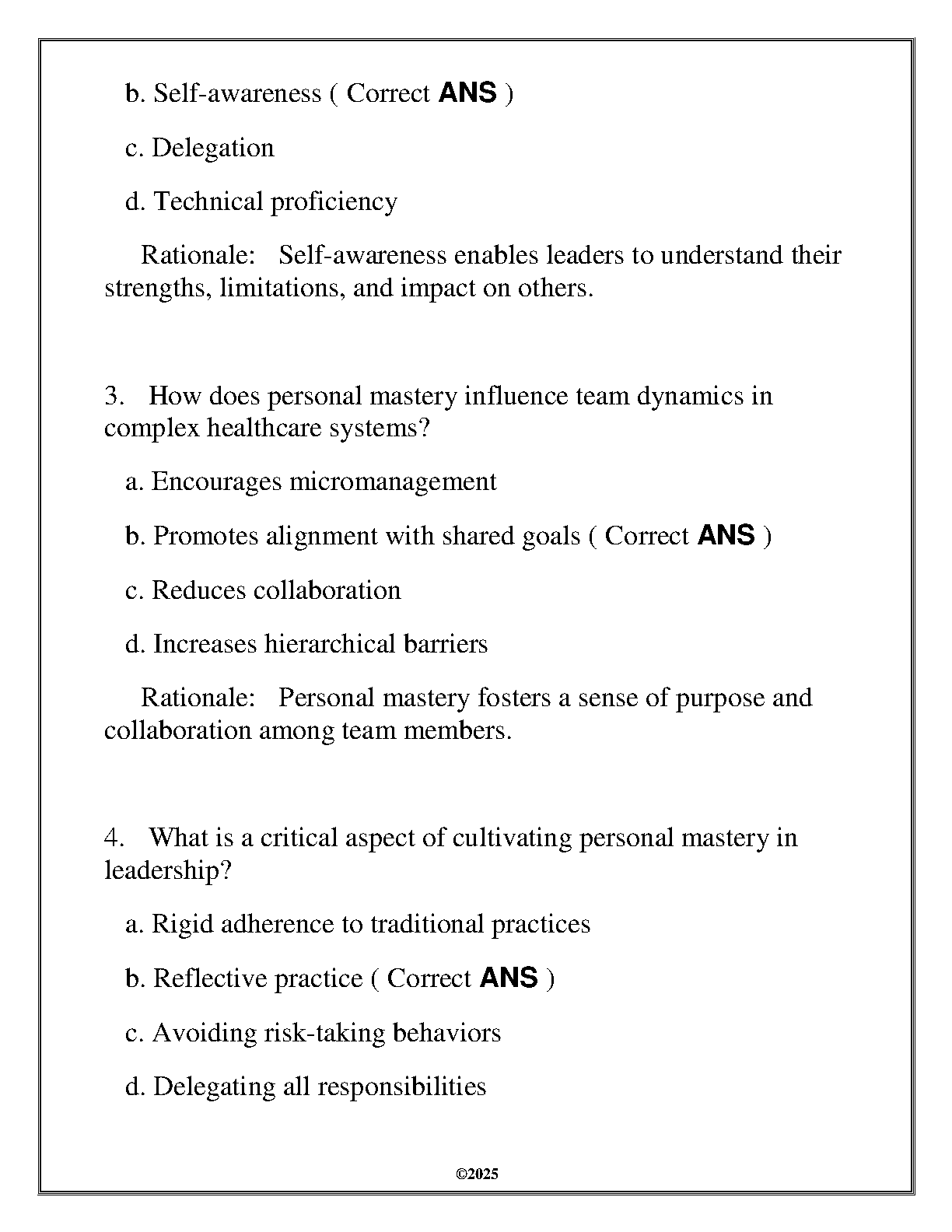 WGU D155 NURS 6431 Leading with Personal Mastery (NLM) 2025: Objective Assessment Review with Questions and Answers
